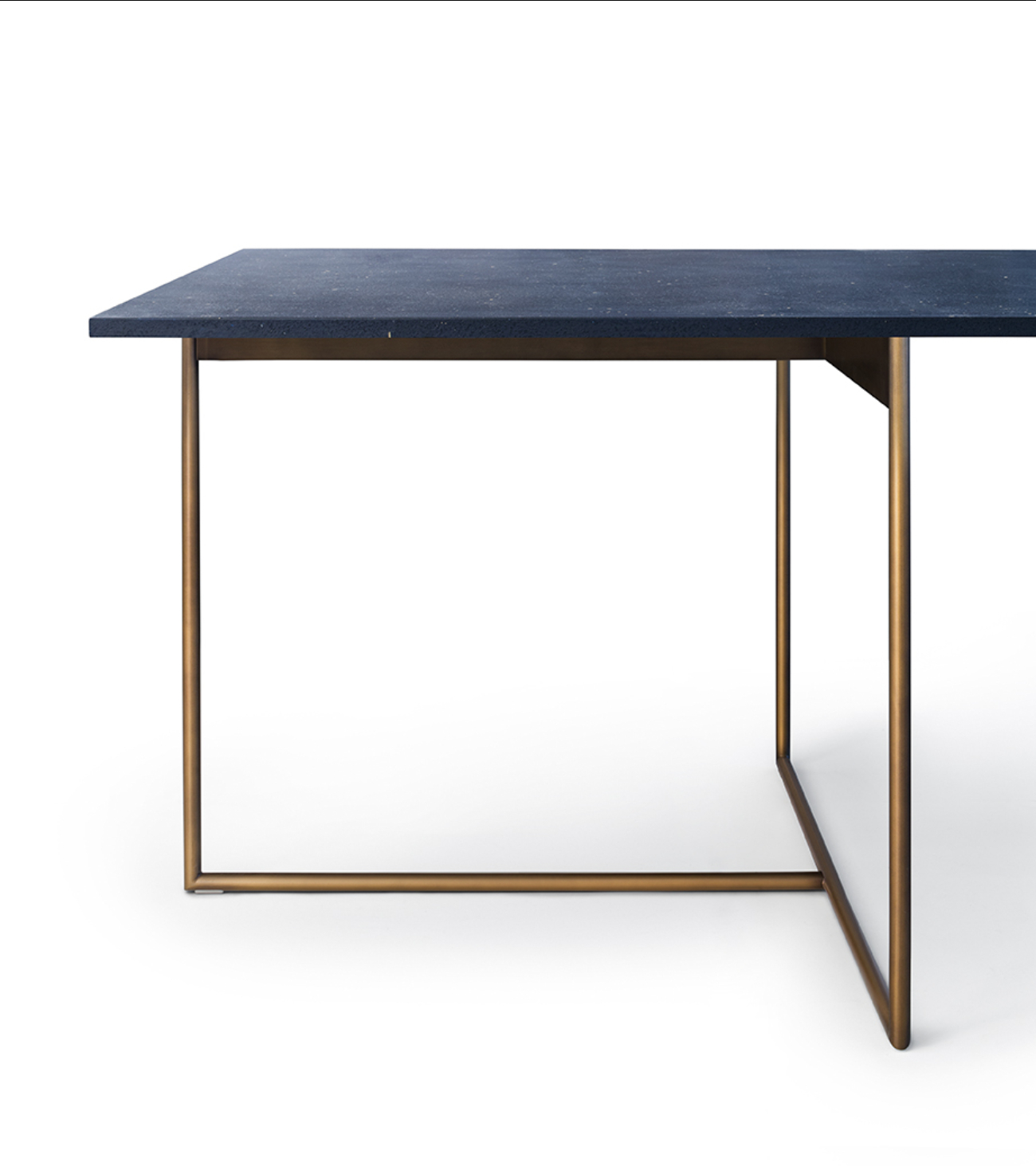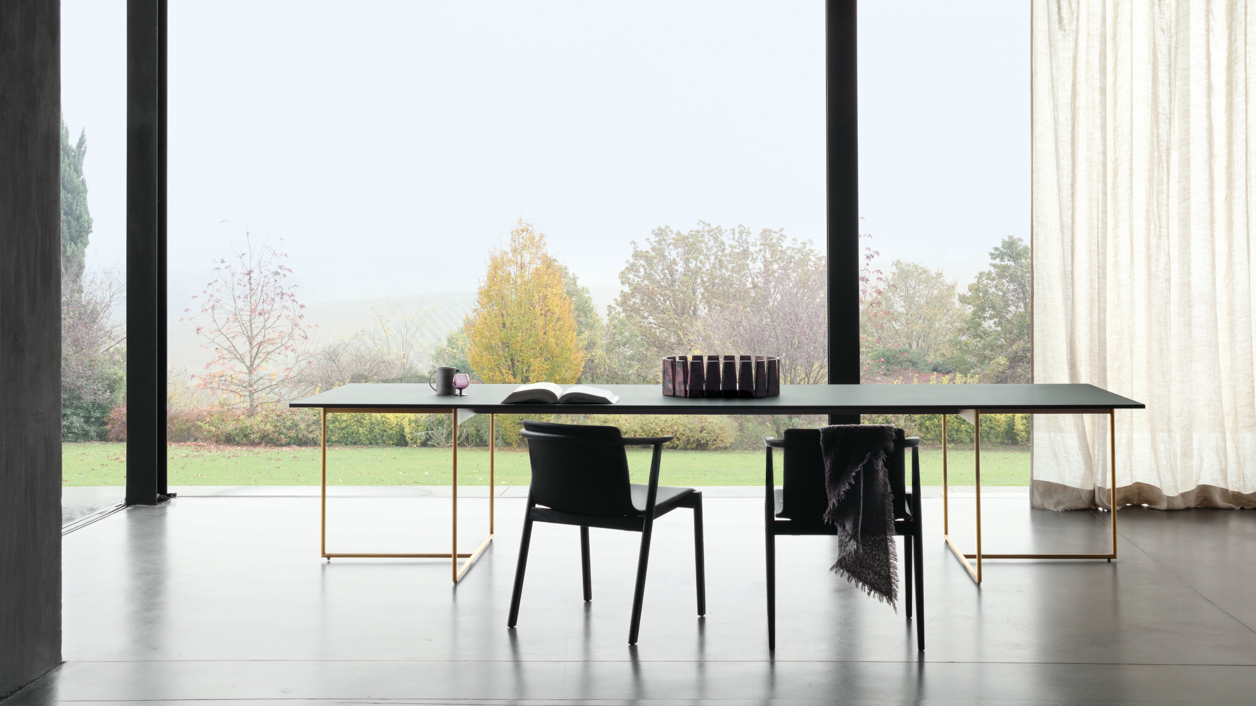 The Alamo dining table revisits the decorative codes of the 1940s through its rigorous and sophisticated lines, with a completely contemporary minimalist flair. The design research focused on the theme of lightness: the table features a structure and top reduced to the essentials, resulting in an elegantly clean object that captivates with the combination of different materials.