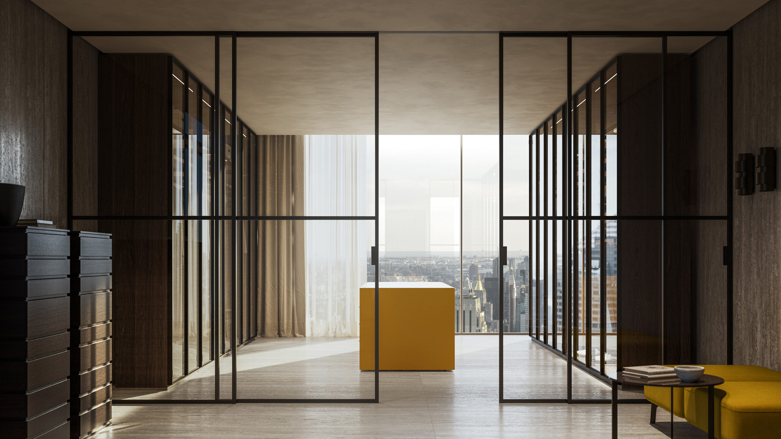 Finish: clear glass, smoked grey glass, reflective bronze glass, bronze glass with fabric-patterned screen printing