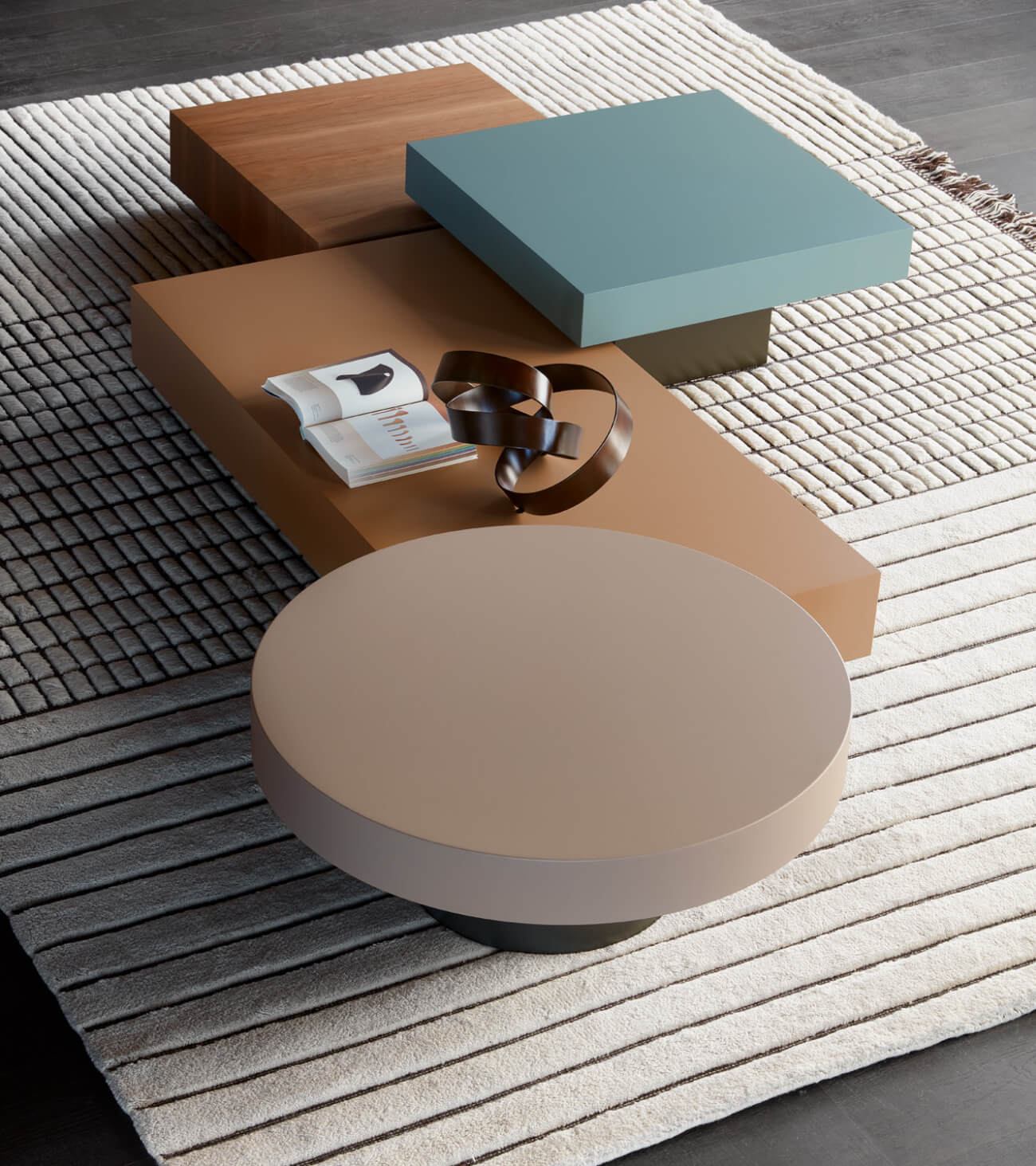 Dolmen is a family of coffee tables distinguished by their pure geometric tops—rectangular, square, or round—that can be freely combined in an interplay of shapes.