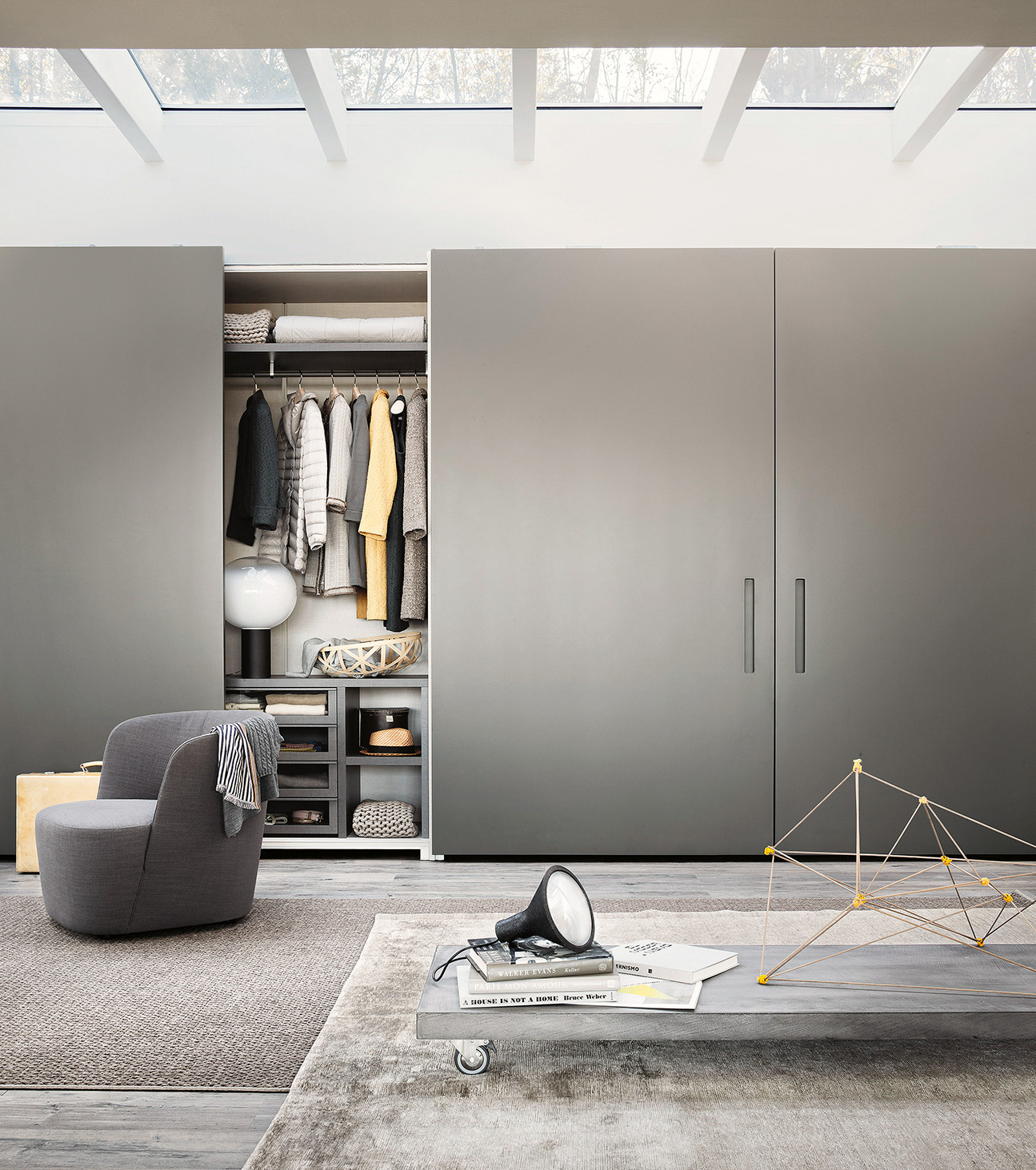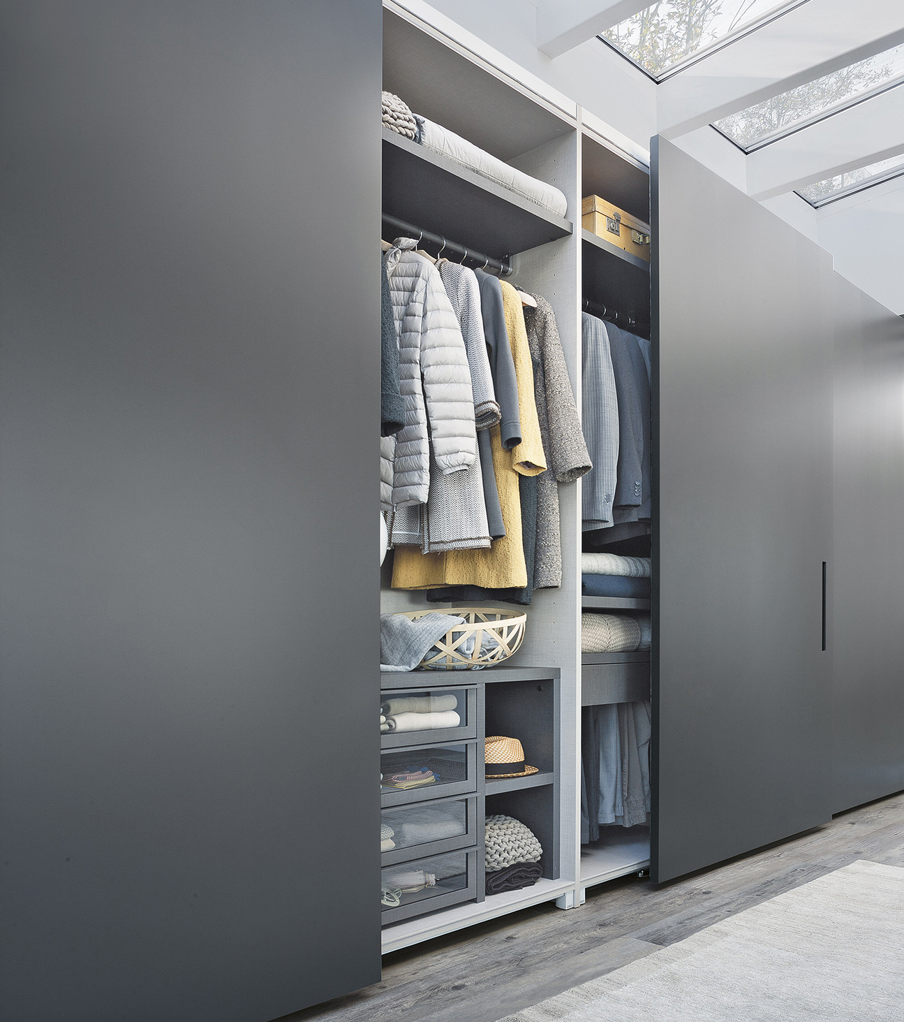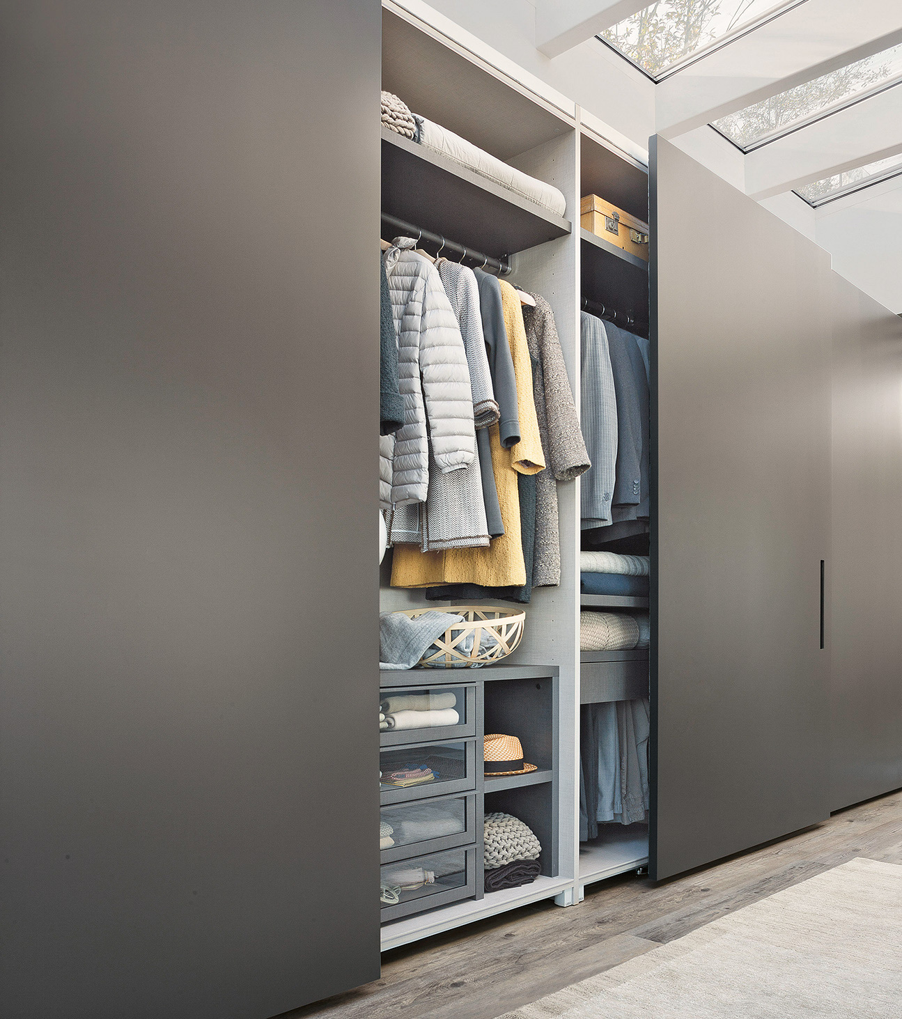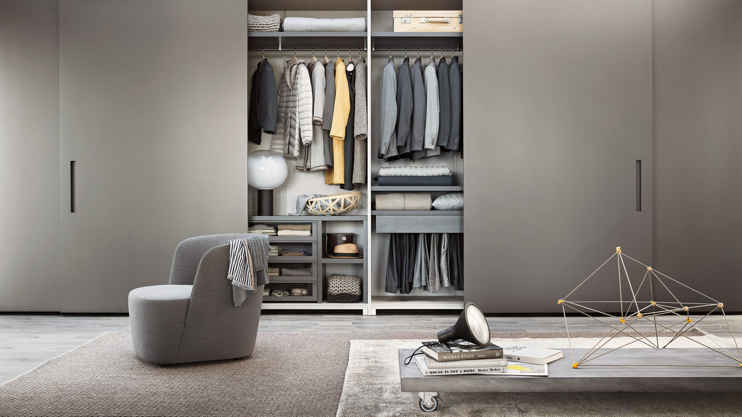 There are also numerous possibilities for customizing the interiors: the ‘Armadio al Centimetro’ program offers a wide range of finishes and an extensive selection of accessories designed to organize space according to specific functional needs. Drawer units, trouser racks, belt holders, shoe racks; shelves and clothes rails with integrated lighting. Not to mention exquisite leather and fabric details such as drawer mats and boxes for shirt compartments.