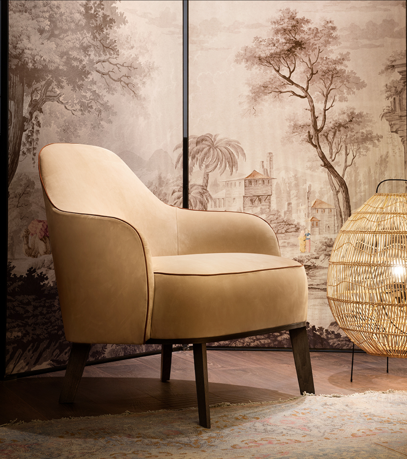 The soft yet firm padding reduces the overall volume, balancing proportions while preserving comfort. A timeless design that highlights the brand’s artisanal values, emphasized by the grosgrain piping that traces the seams of the fabric or leather upholstery.