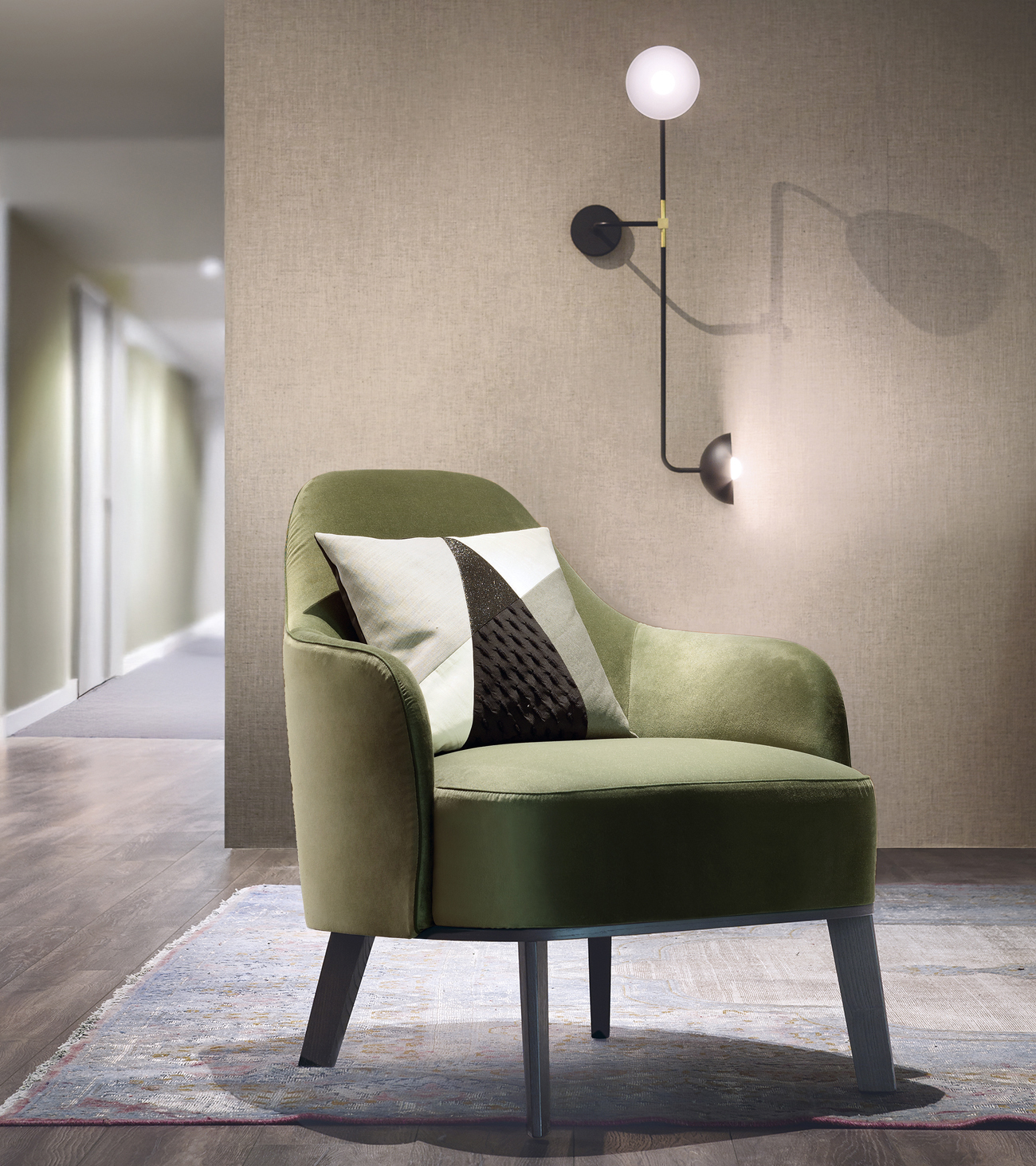 The Fantino armchair by LEMA, designed by Gordon Guillaumier, is inspired by the elegant shape of a horse saddle with a harmonious and refined design. The frame is crafted from birch plywood with solid heat-treated ash legs, bringing natural warmth to your interiors. Comfortable padding in variable-density polyurethane with a removable fabric cover or fixed leather upholstery, enhanced by grosgrain piped stitching. Compact dimensions: W 700 x D 830 x H 790 mm. Artisan quality Made in Italy with certified eco-friendly materials and a focus on environmental sustainability. The balance between tradition and modern comfort makes Fantino perfect for prestigious residential and contract settings.