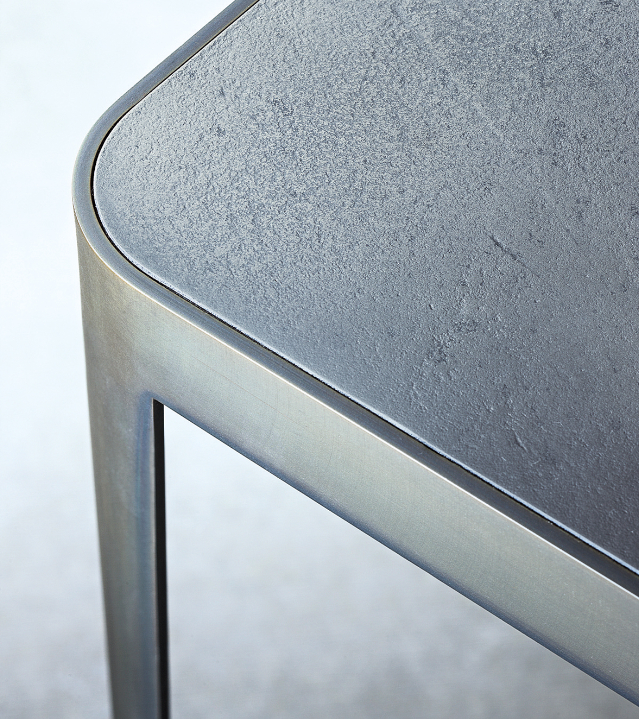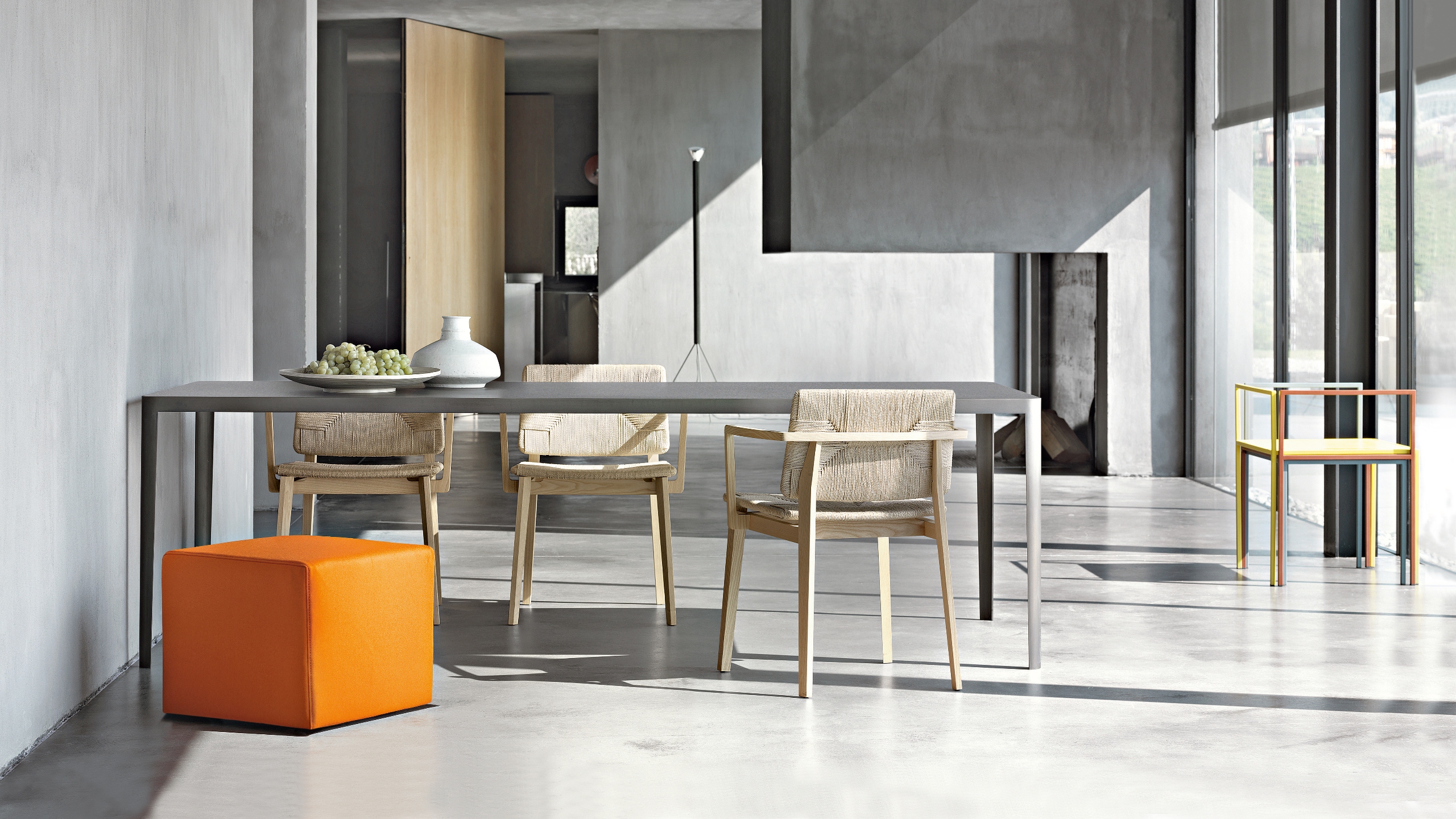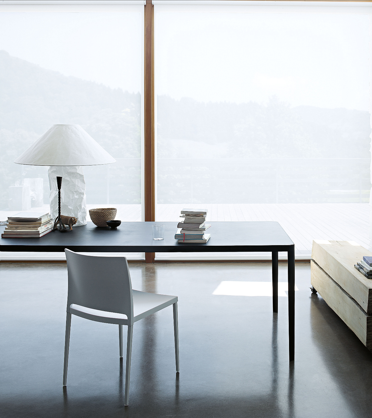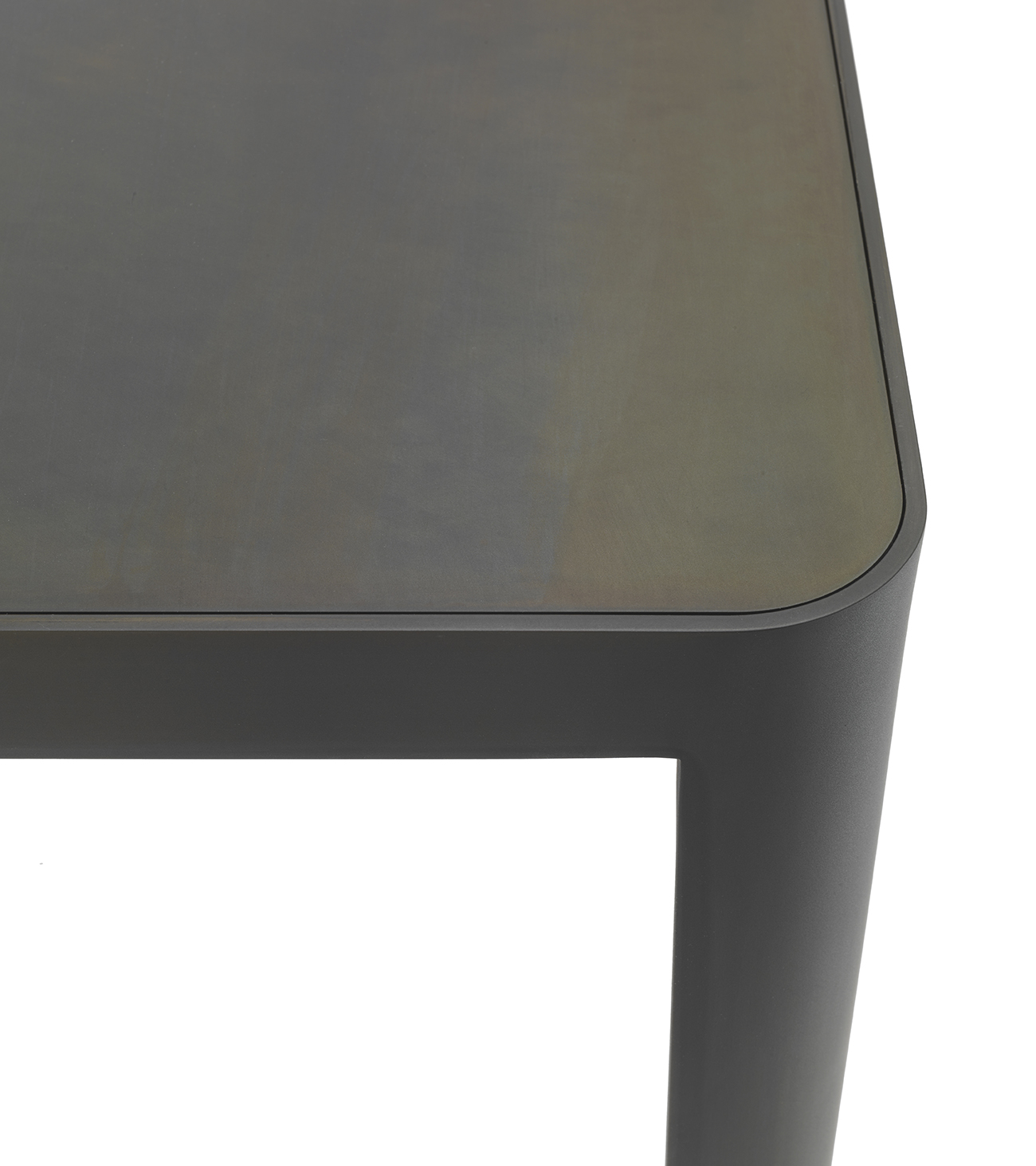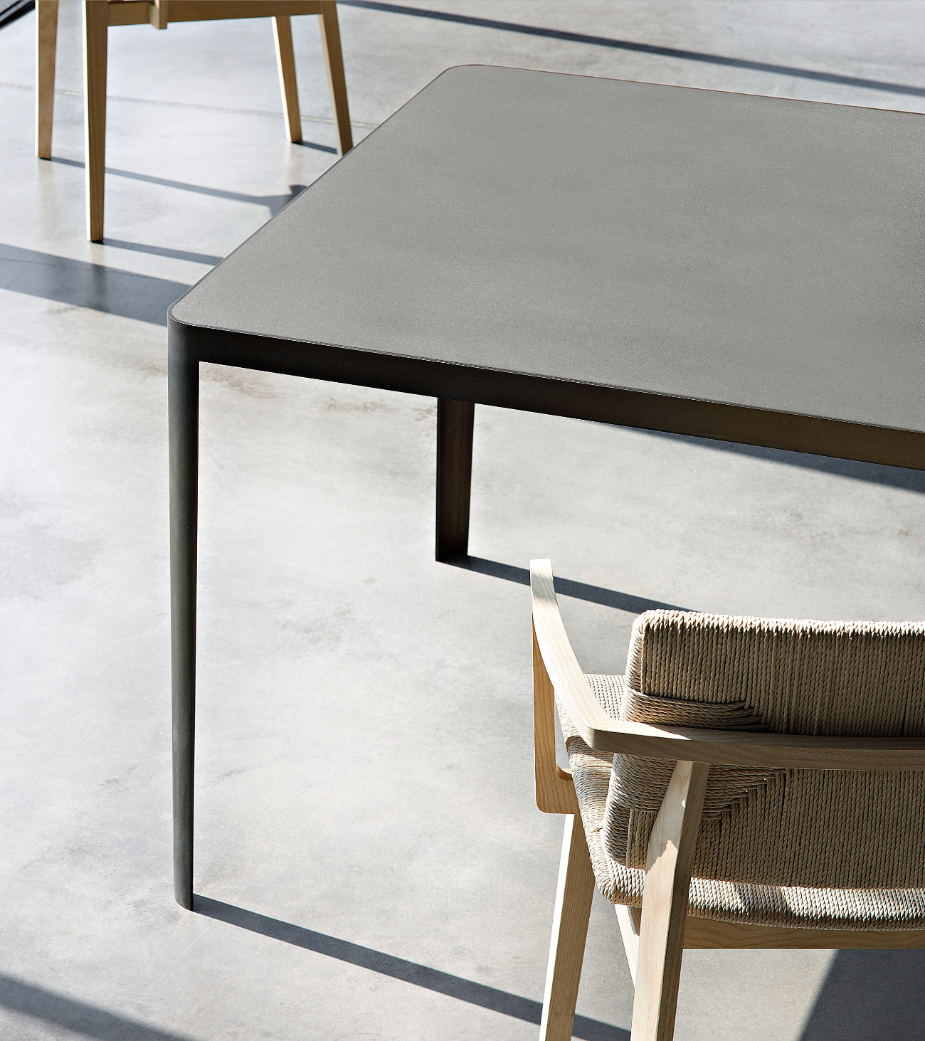A rigorous and elegant design that eliminates every superfluous element for the Filo table. It is characterized by thin sheet metal legs which, welded to a frame of the same material, give the structure an extreme lightness.
