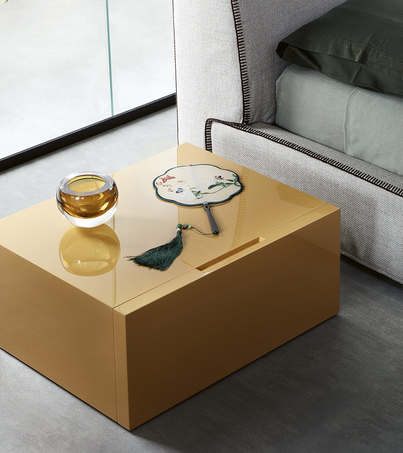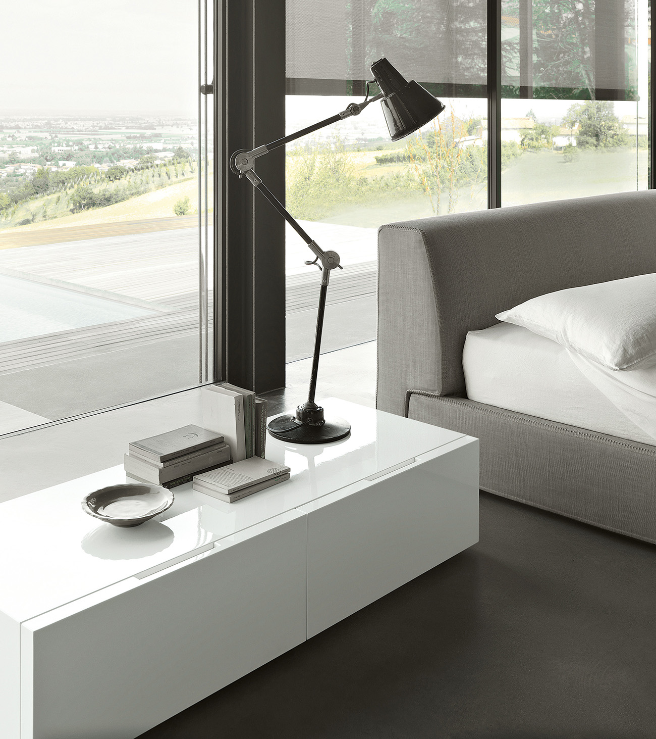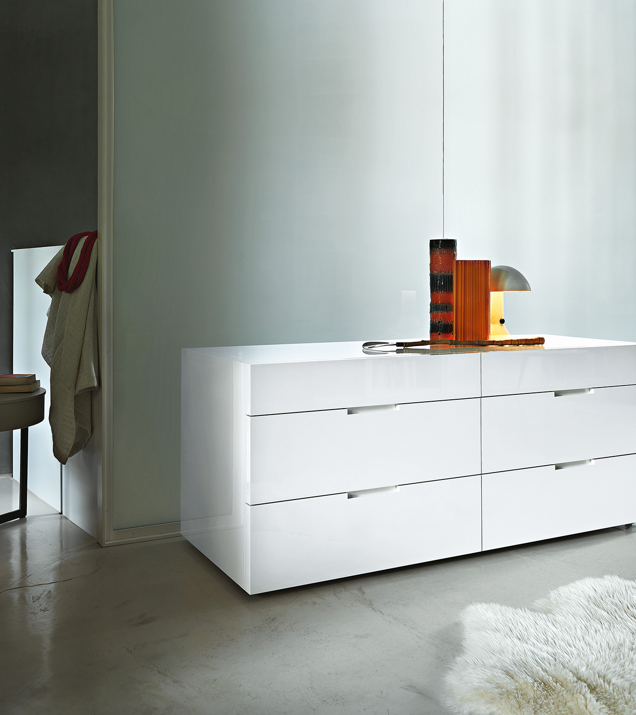 Resulting from the research of Officinadesign Lema, Flin is a refined system of drawer storage units designed for the bedroom with a classically minimal design, also suitable for the living room: bedside tables and dressers, offered in different sizes and volumes, all in two finishes, matt or glossy lacquered.