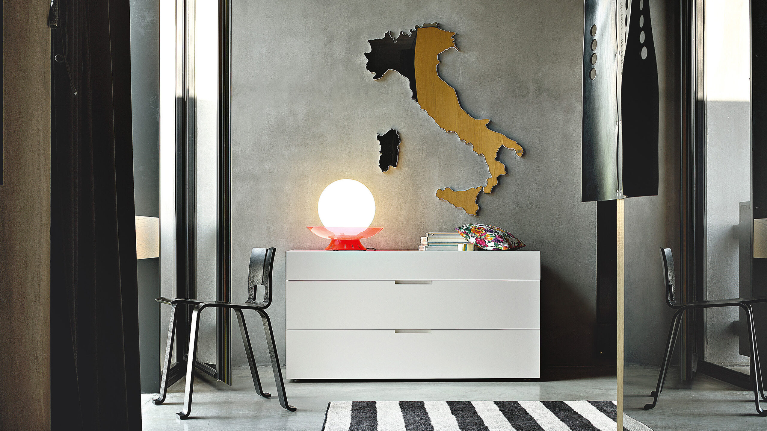 Evergreen solutions with timeless elegance, strict and rational in their harmoniously proportioned design, complete the bedroom furniture, enriching it with their discreet sobriety. Individual protagonists of the environment can be combined to create small-scale domestic architectures. The handle made from a cut in the thickness of the front contributes to defining the refined aesthetics of Flin.