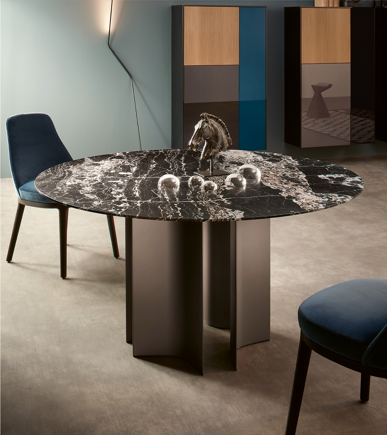 Finish: lapis lazuli blue, malachite green, Belgian blue black, Candoglia white, veneered essence, clay