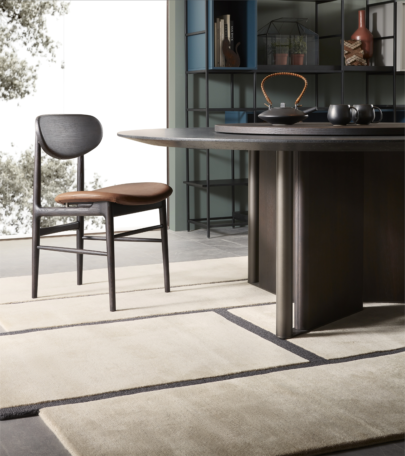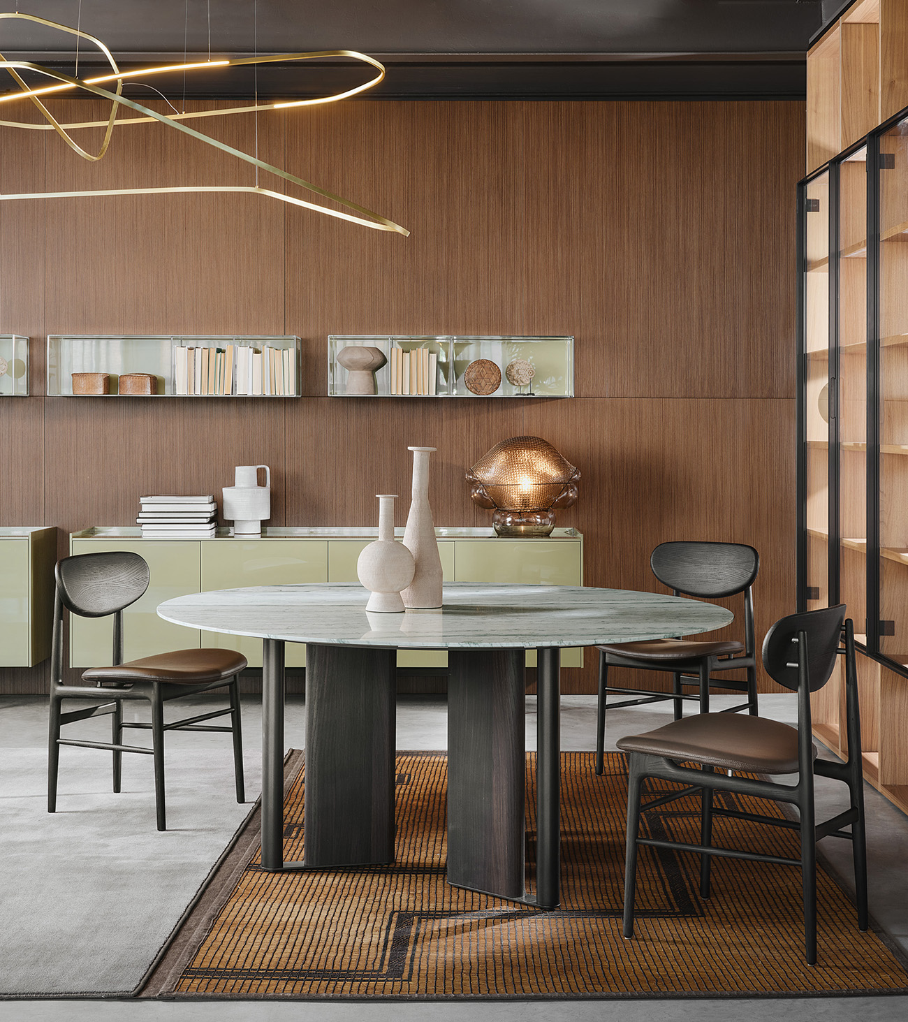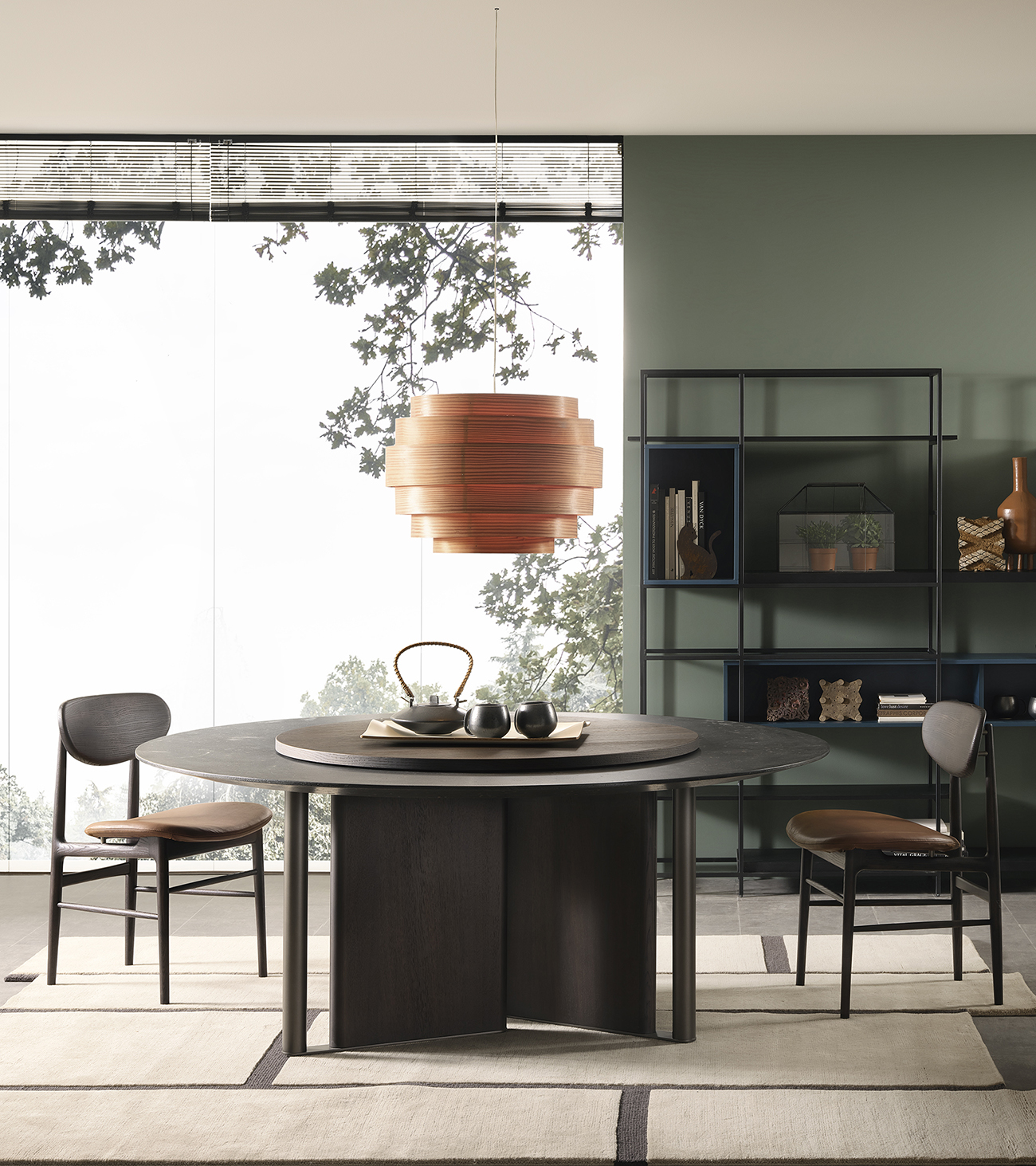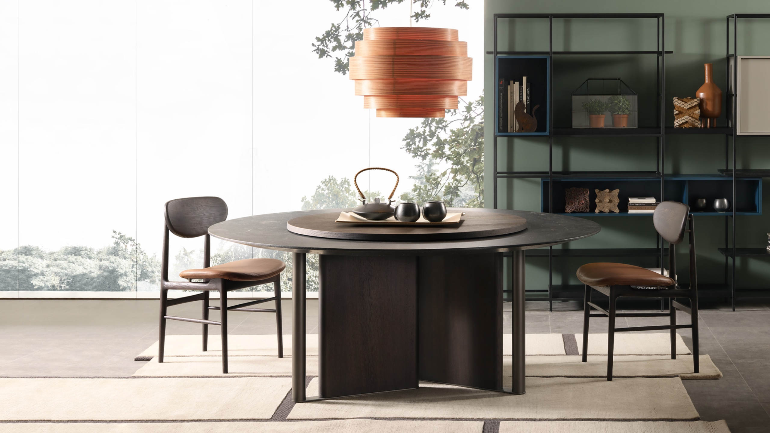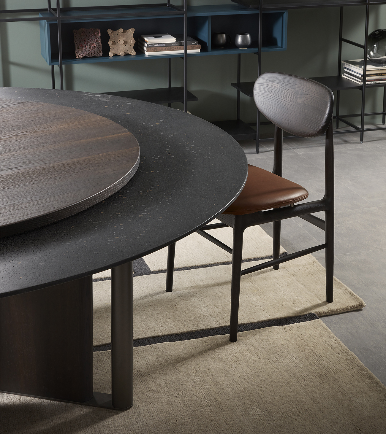 In-Between by LEMA, design Ximi Li, is a sculptural table characterized by a base formed from alternating elements that give lightness and two-dimensionality to the living space. The tabletop is available in different variants—wood, reconstructed marble, natural marble, stoneware, or clay—with artisanal finishes that make each piece unique. The surfaces, protected by specific paints, ensure resistance and durability. Main dimensions: Ø 1400-1585-1800 mm, H 730 mm. In-between combines certified materials, innovative processes, and Lema’s Made in Italy tradition.