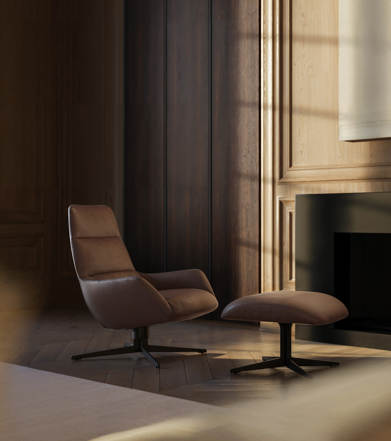 The Lady Jane armchair, designed by Christophe Pillet, is a refined and enveloping bergère with bold lines that recall the shapes of the 1950s. A versatile, elegant, and comfortable piece, distinguished by its 360° swivel mechanism, making it perfect even in residential settings.