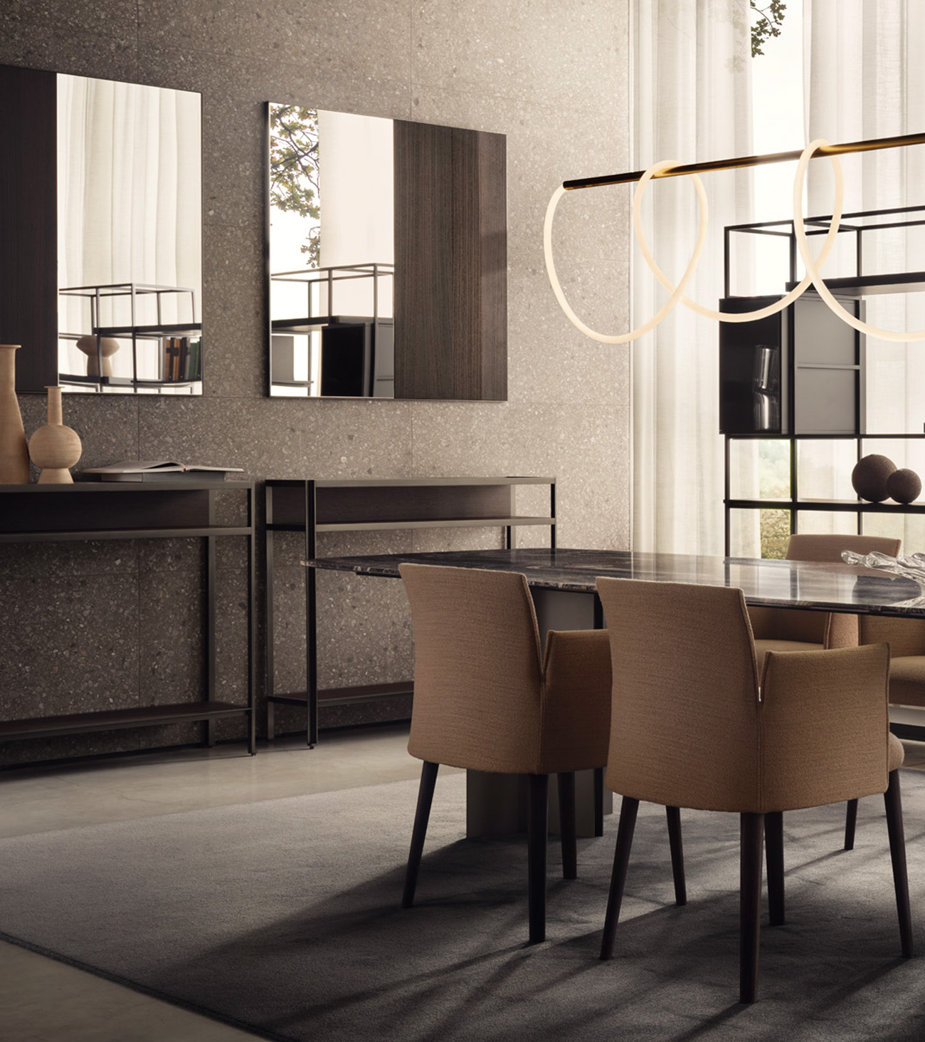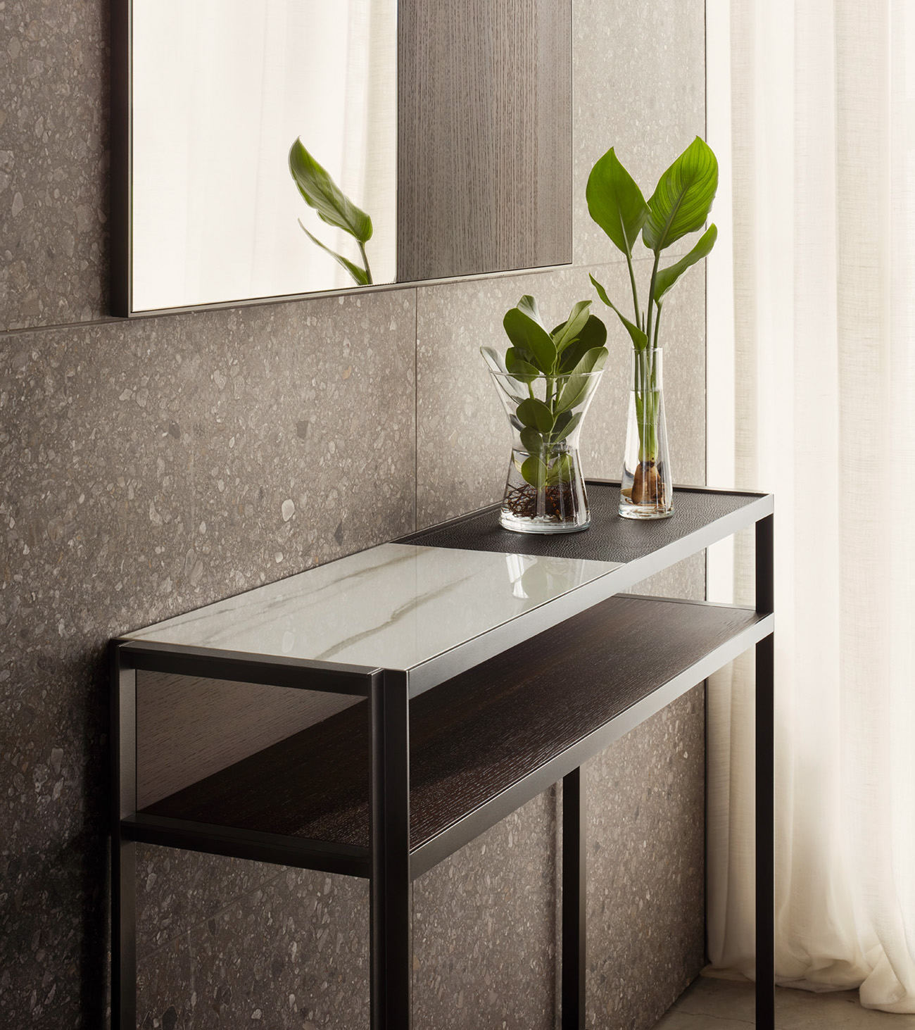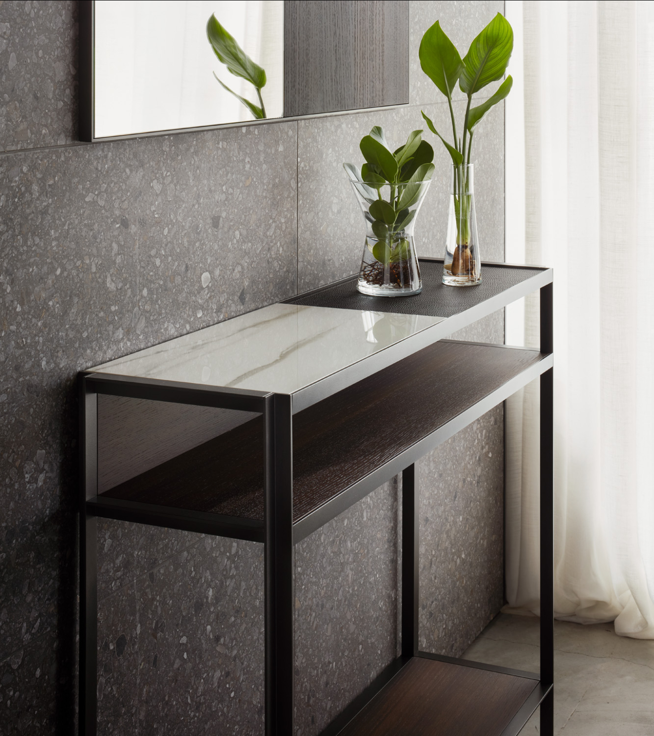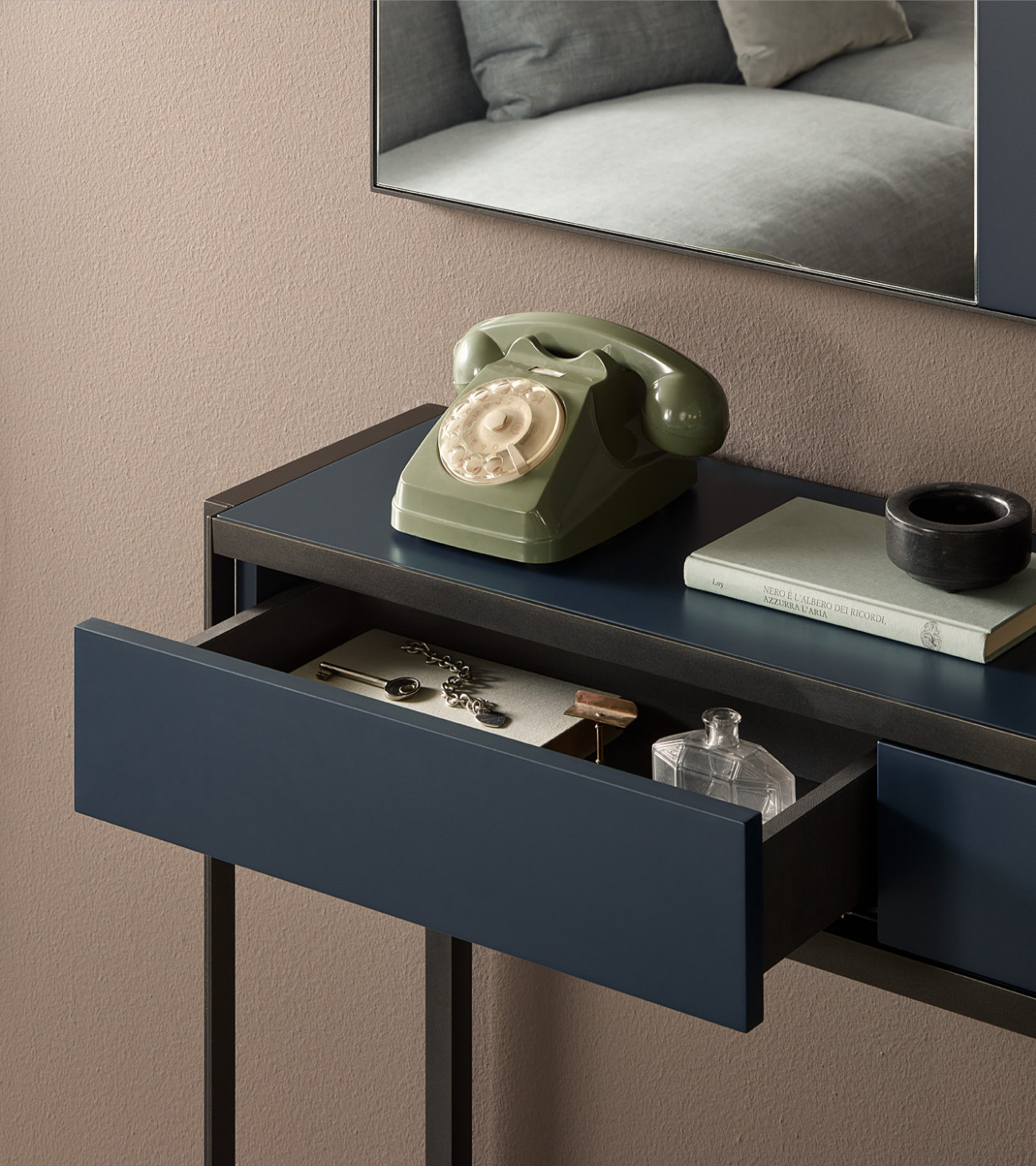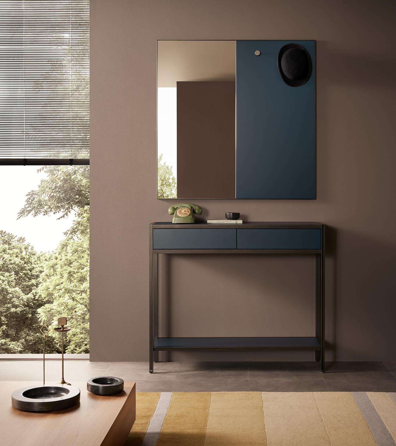 A system capable of adapting to the needs of contemporary living, a multifunctional piece of furniture with a minimalist look. Lina is the console designed to live in home entrances, introducing those who live there to an atmosphere of warmth and familiarity. Designed by Squire&Partner, the console features an airy structure and a thin top, customizable thanks to the wide range of finishes in the catalog.