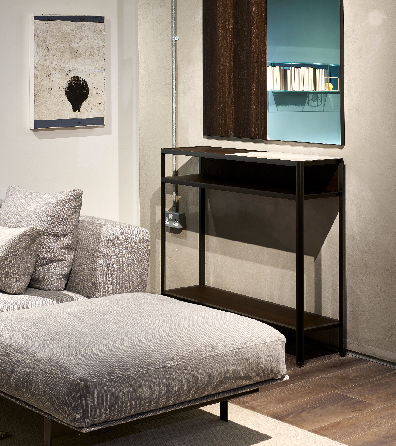 The Lina console by LEMA, designed by SquirePartners, combines contemporary luxury and minimalist design in an essential and welcoming form. The iron frame with adjustable feet supports a thin MDF top available in matt lacquer, heat-treated oak, canaletto walnut, or porcelain stoneware. Lina console is a made-in-Italy piece by Lema that blends aesthetics, functionality, and fine materials, expressing a discreet and authentic luxury inspired by Italian artisanal quality.