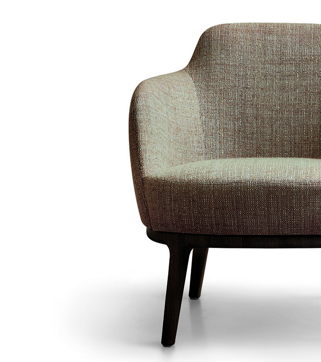 The Lucylle LEMA lounge chair, designed by Roberto Lazzeroni, embodies classic and inviting proportions with refined elegance. Solid ash wood frame stained in heat-treated oak and soft high-density polyurethane padding ensure superior comfort. Upholstery available in fabric, leather, or synthetic leather, enhanced by topstitching that highlights LEMA’s signature tailoring quality. Feet with interchangeable anti-scratch glides provide stability and protect surfaces. Artisan quality Made in Italy with carefully selected materials and strict sustainability standards.