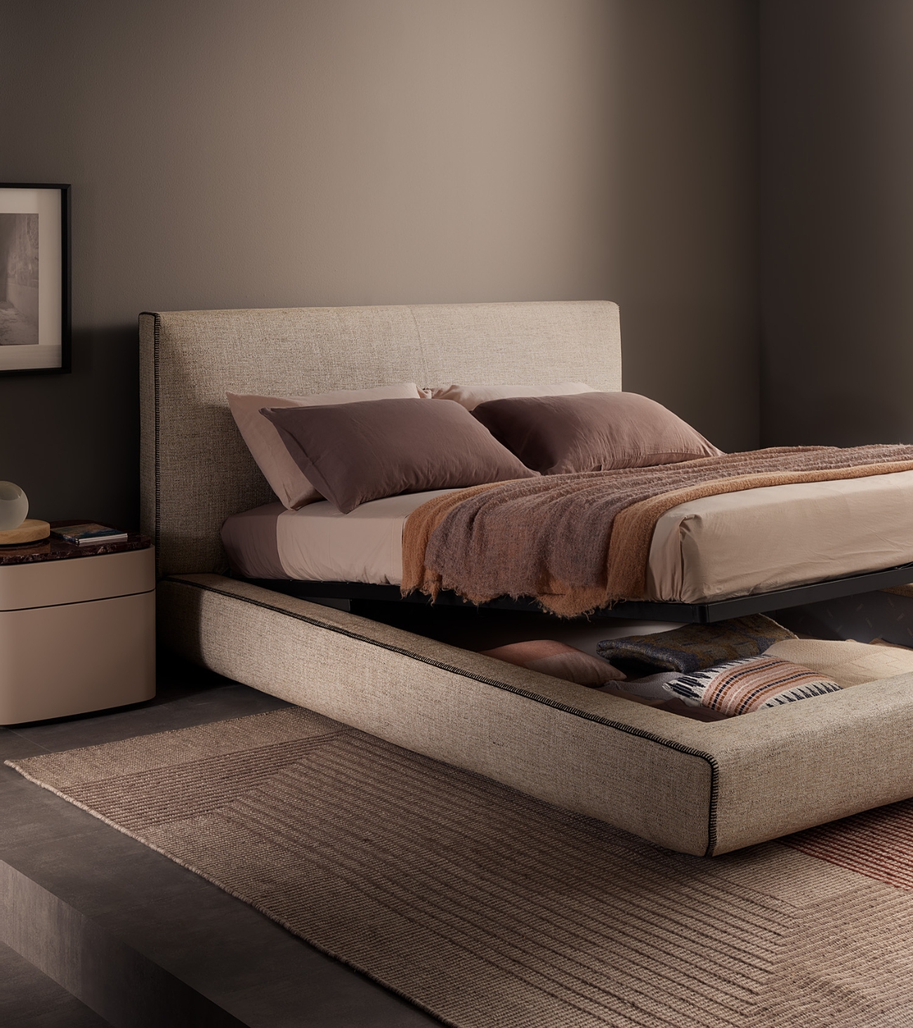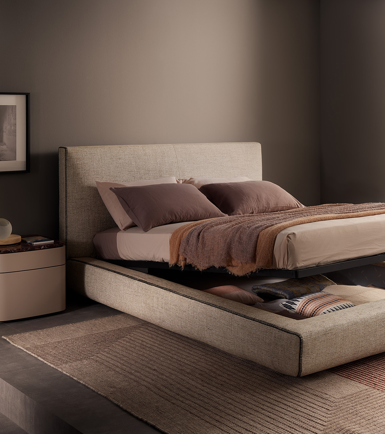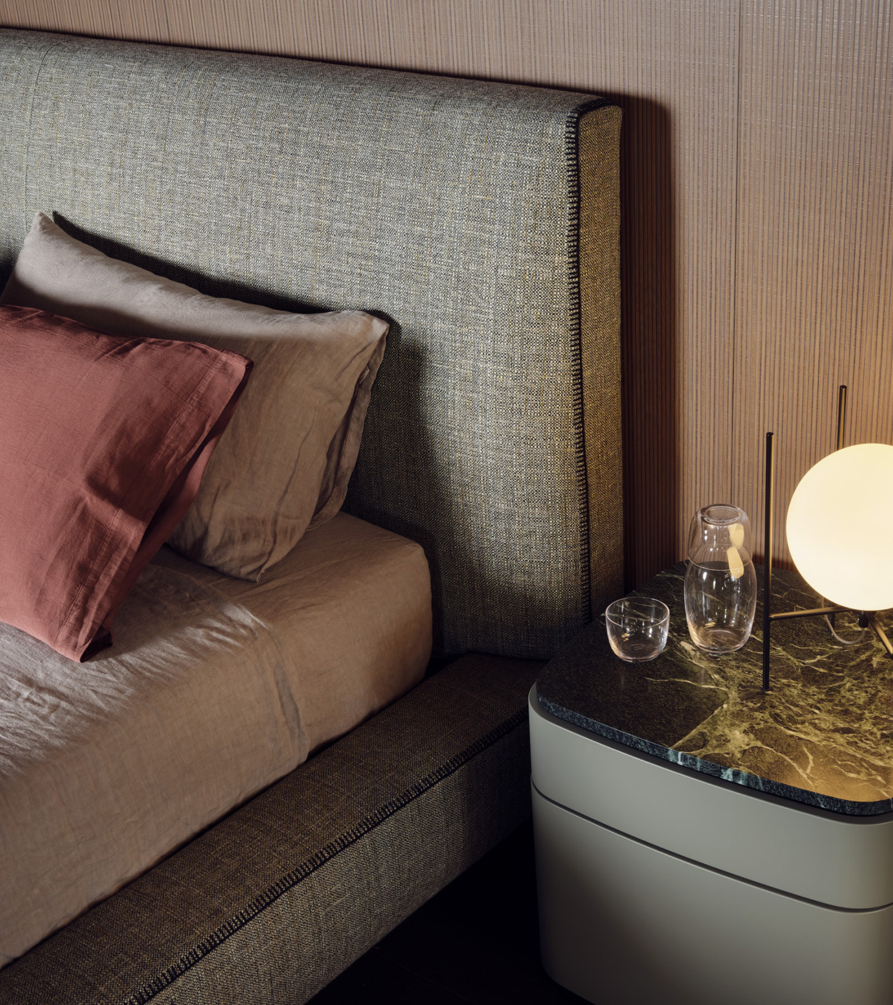 Suggestions from the past give life to a collection that stands out for its aesthetic research and attention to detail. Designed by Studio Ludovica+Roberto Palomba, the Lullaby bedroom furniture family represents the result of extensive experience in textile craftsmanship, especially in blanket stitching.