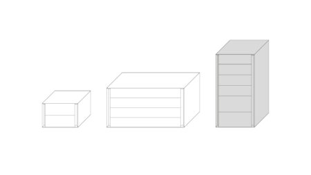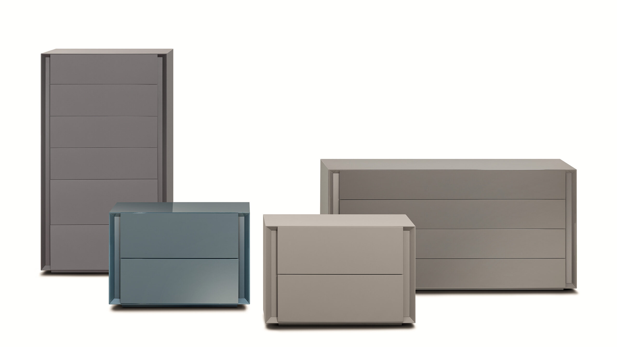 Luna is a family of storage units designed for the bedroom, captivating with their essential aesthetics and tailored details. The Luna collection consists of a nightstand, a four-drawer dresser, and a tall six-drawer dresser in different depths.