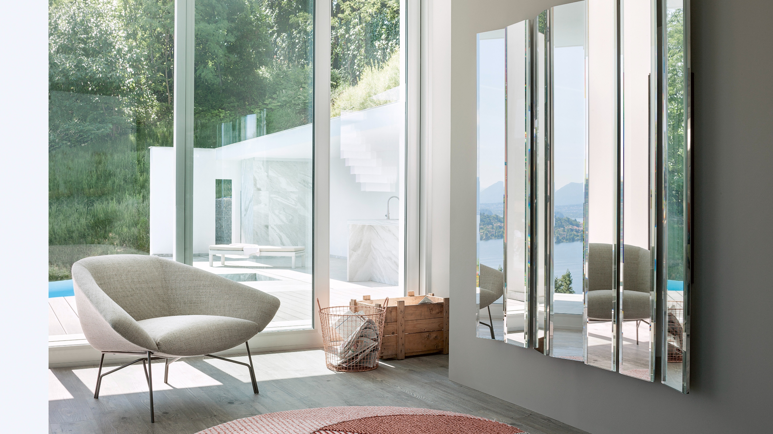 Placed side by side, the Mirage mirror modules enliven the walls and expand the sense of space, giving greater depth to any environment. An innovative interpretation of a traditional furnishing item, carried out with irony and lightness, in which each module is finished with a bevel reminiscent of classic mirror workmanship, combining modernity and tradition.