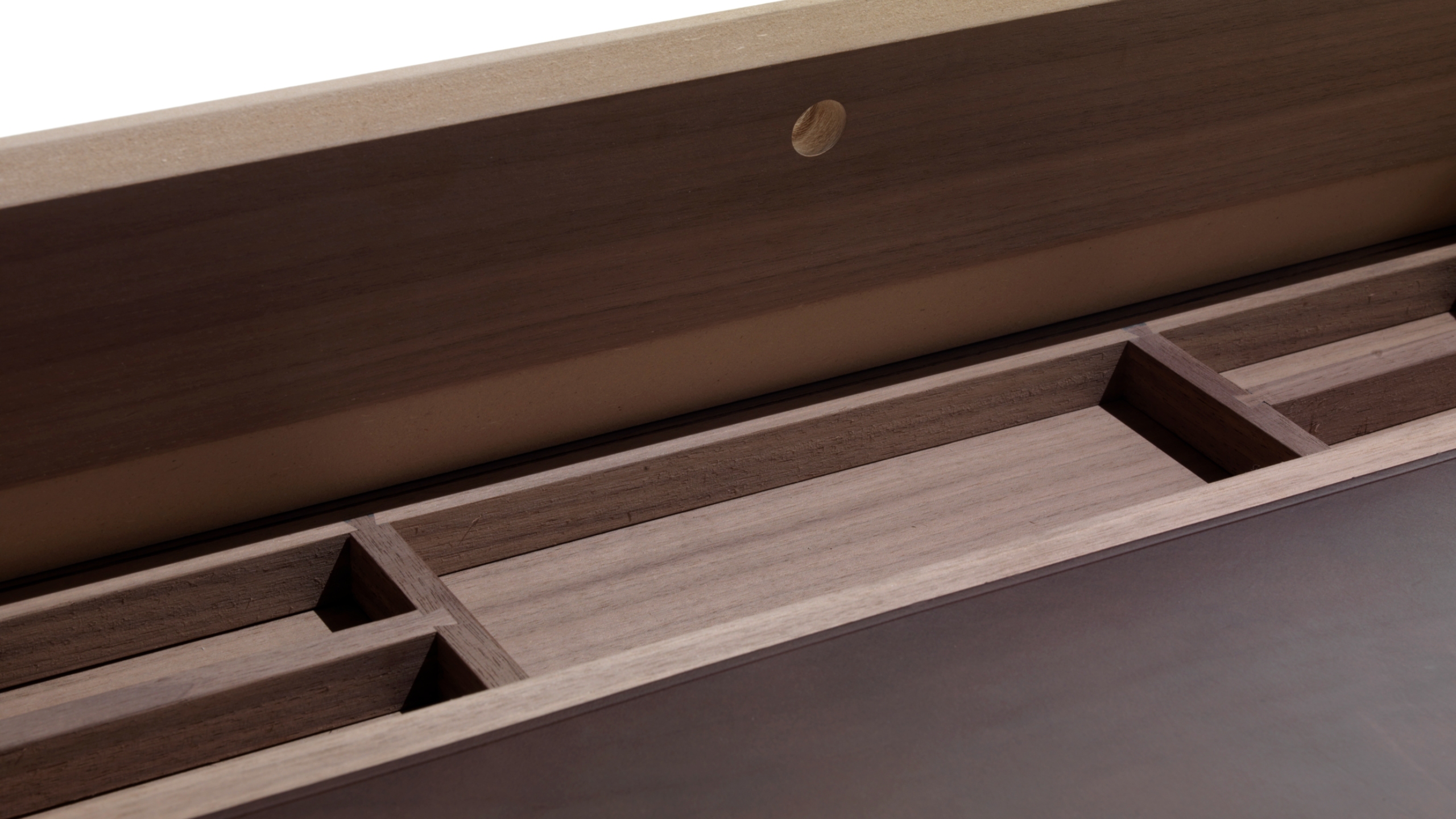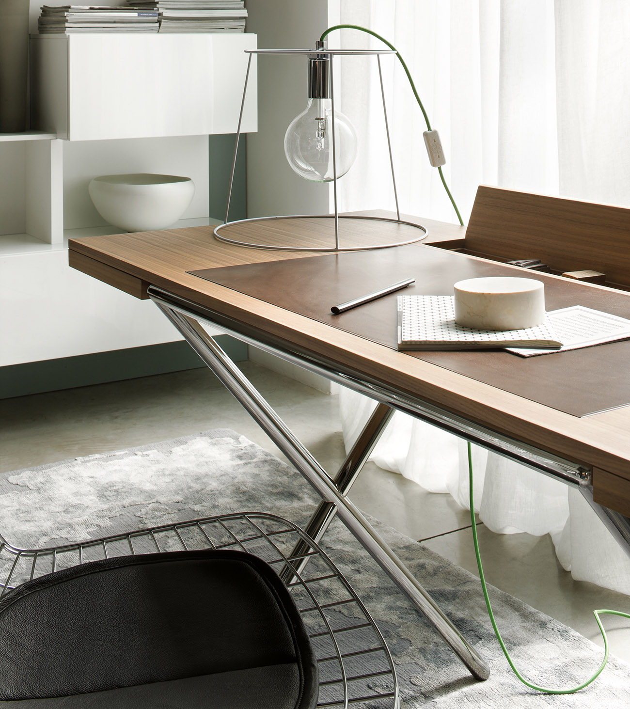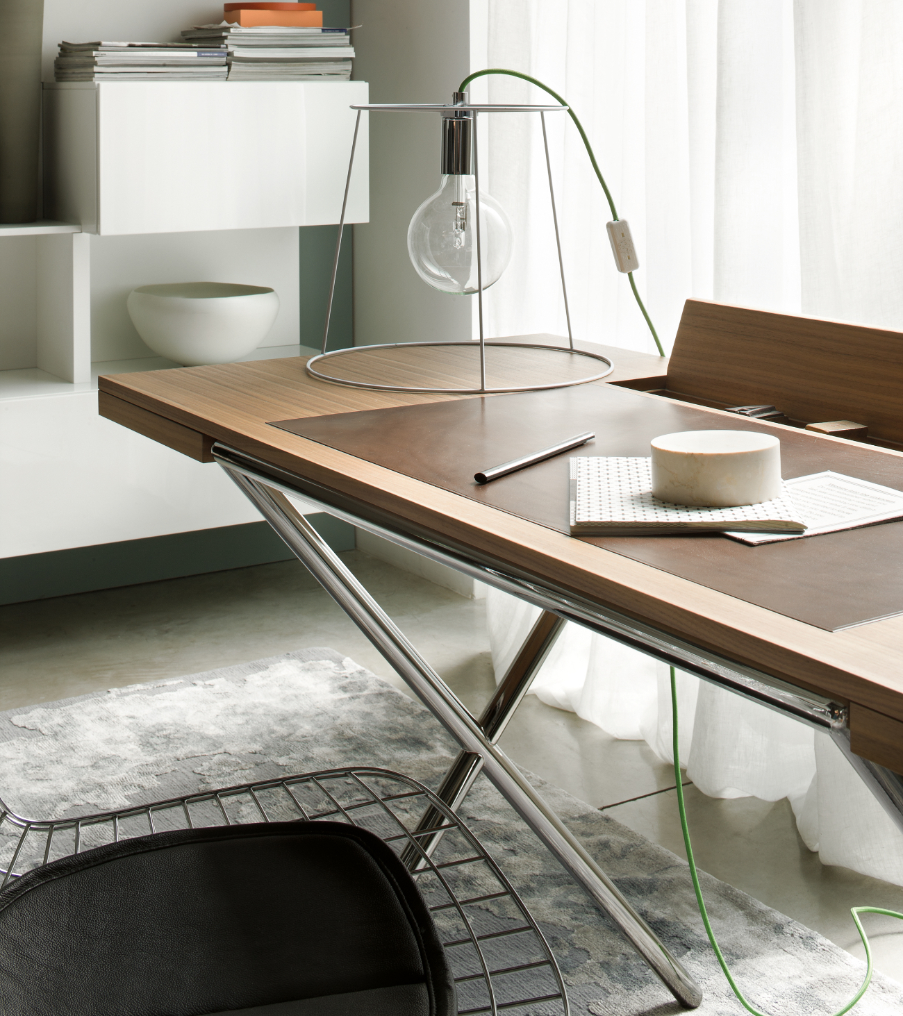 The essence of Novelist, the writing desk designed by Christophe Pillet, resides in its name that evokes the creativity of the past. In a delicate balance between simplicity and design complexity, the materials and aesthetics update its use, affirming its identity as an elegant furnishing element and protagonist of the space.