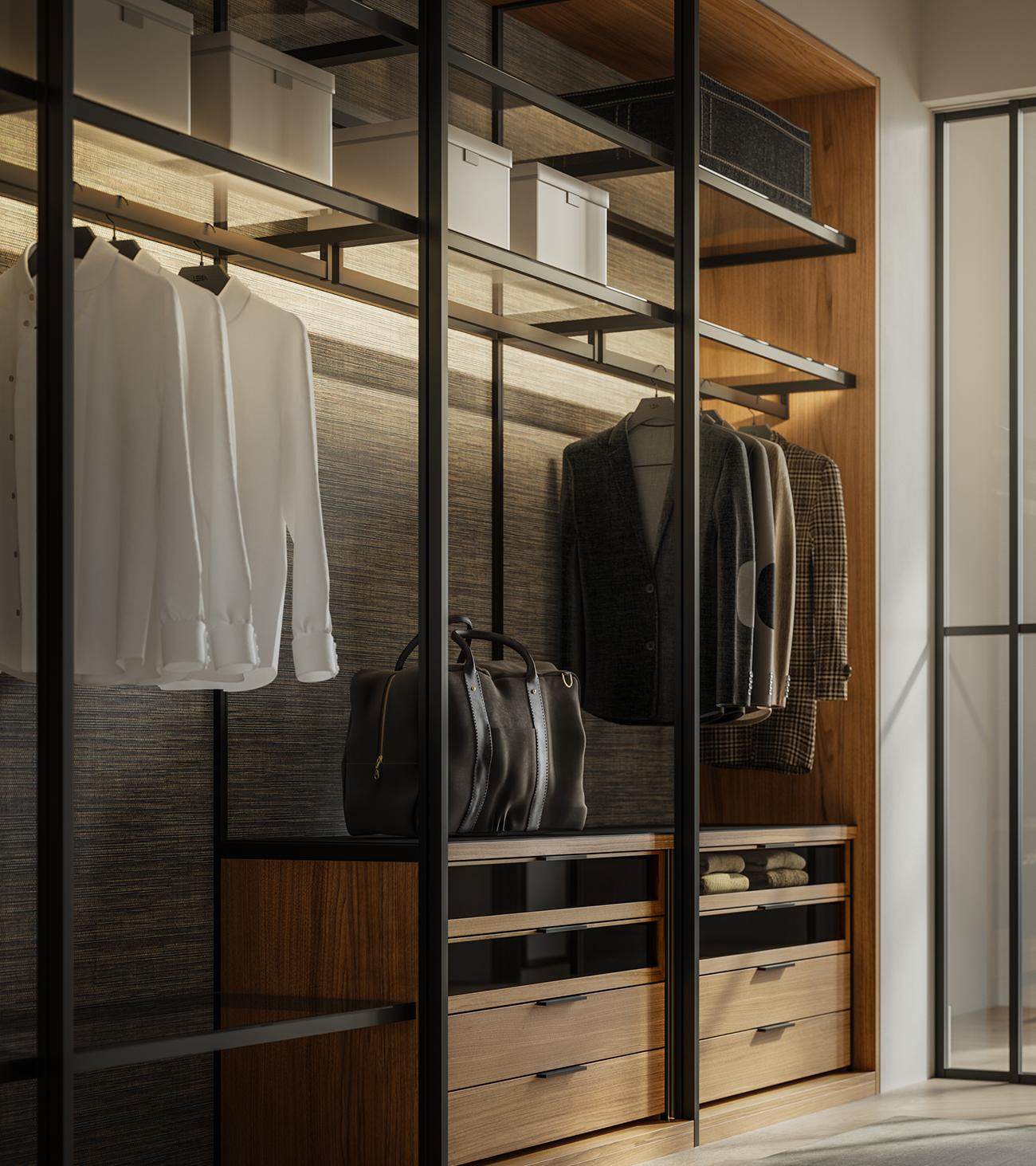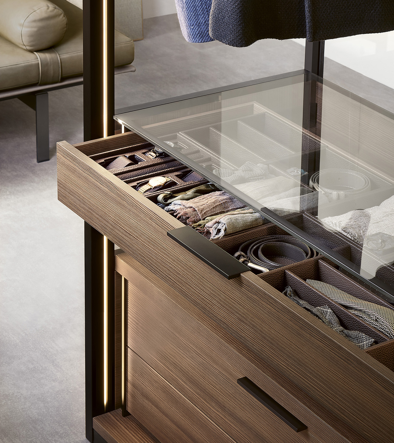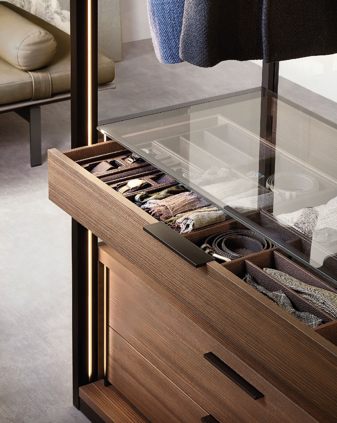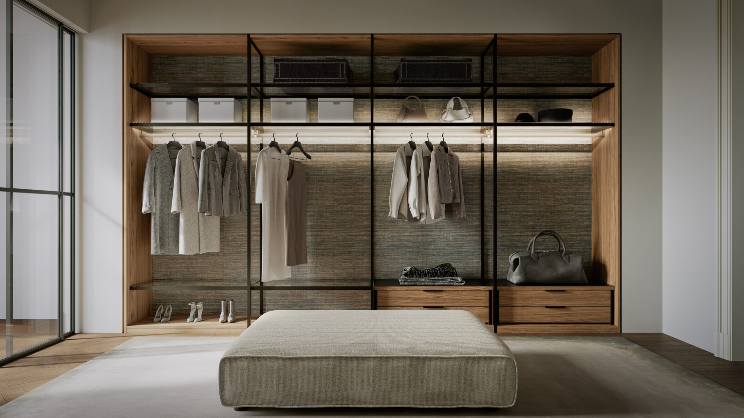 Open stands out for its clean lines and the absence of doors. A perfect expression of the complete flexibility of LEMA’s modular systems, it is designed to furnish spaces with maximum personalization. With its essential style, it represents the ideal solution for homes with a contemporary spirit. A wardrobe also perfectly suited for contract projects, furnishing elegant hotel rooms.