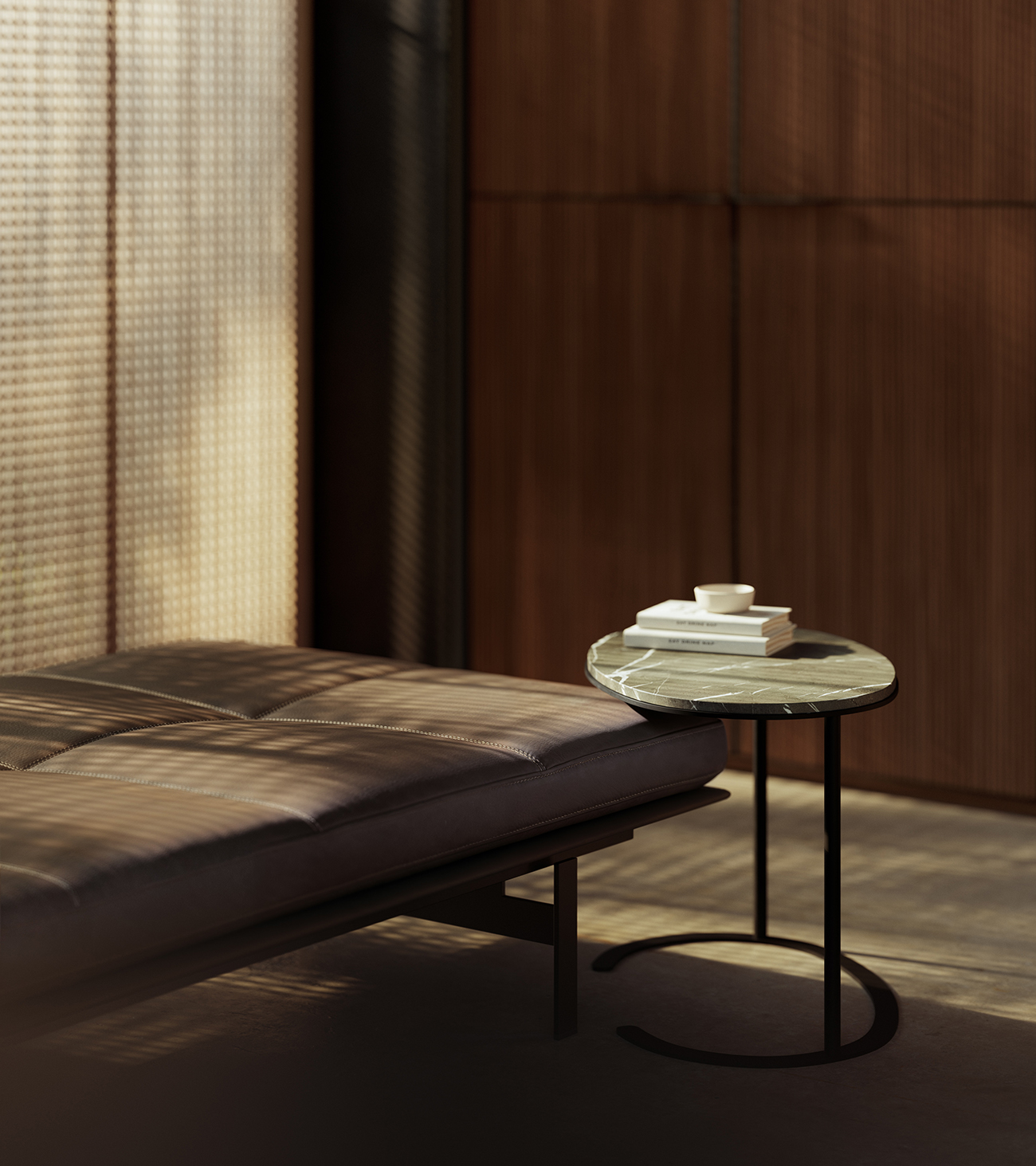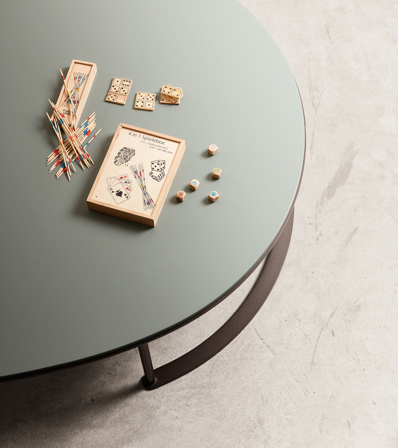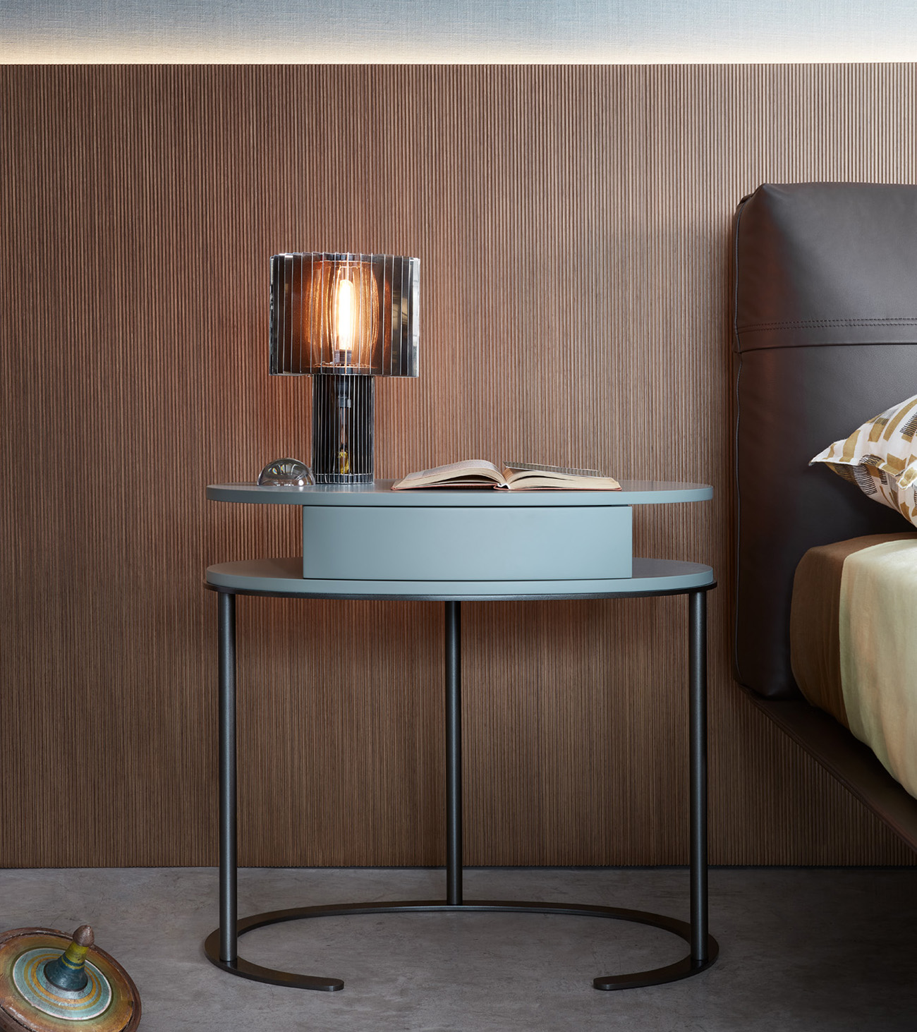 Available in various sizes and heights, they are designed for the living area to accompany sofas, either in front or to the side, and can also be arranged in multiple, interlocking compositions. A versatile piece that can be easily moved around the room as needed, it can be partially slid under the sofa base, transforming into a practical surface for glasses, books, or laptops. The structure is crafted from painted metal, while the tops are offered in glossy and matt lacquer, wood, marble, and stone.