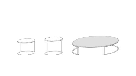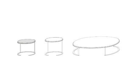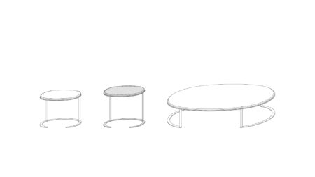 Ortis is a collection of coffee tables distinguished by their oval or round tops, supported by a light metal tube structure anchored to semicircular base plates.