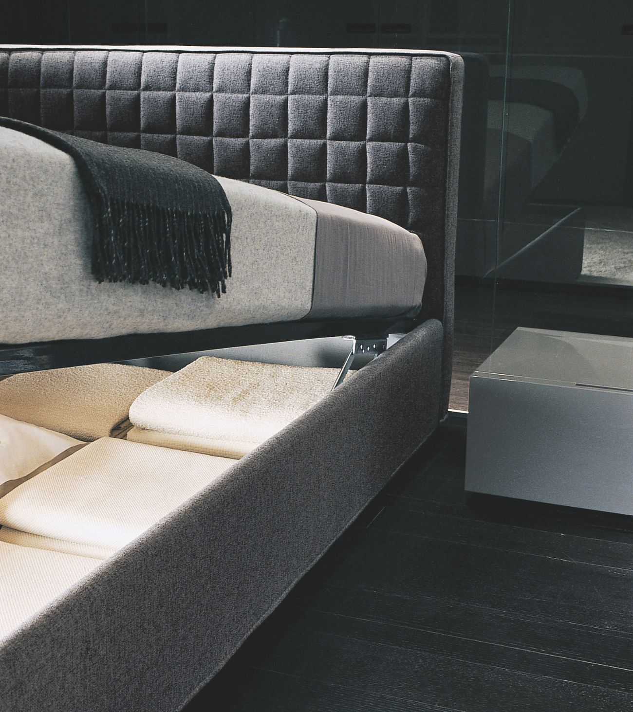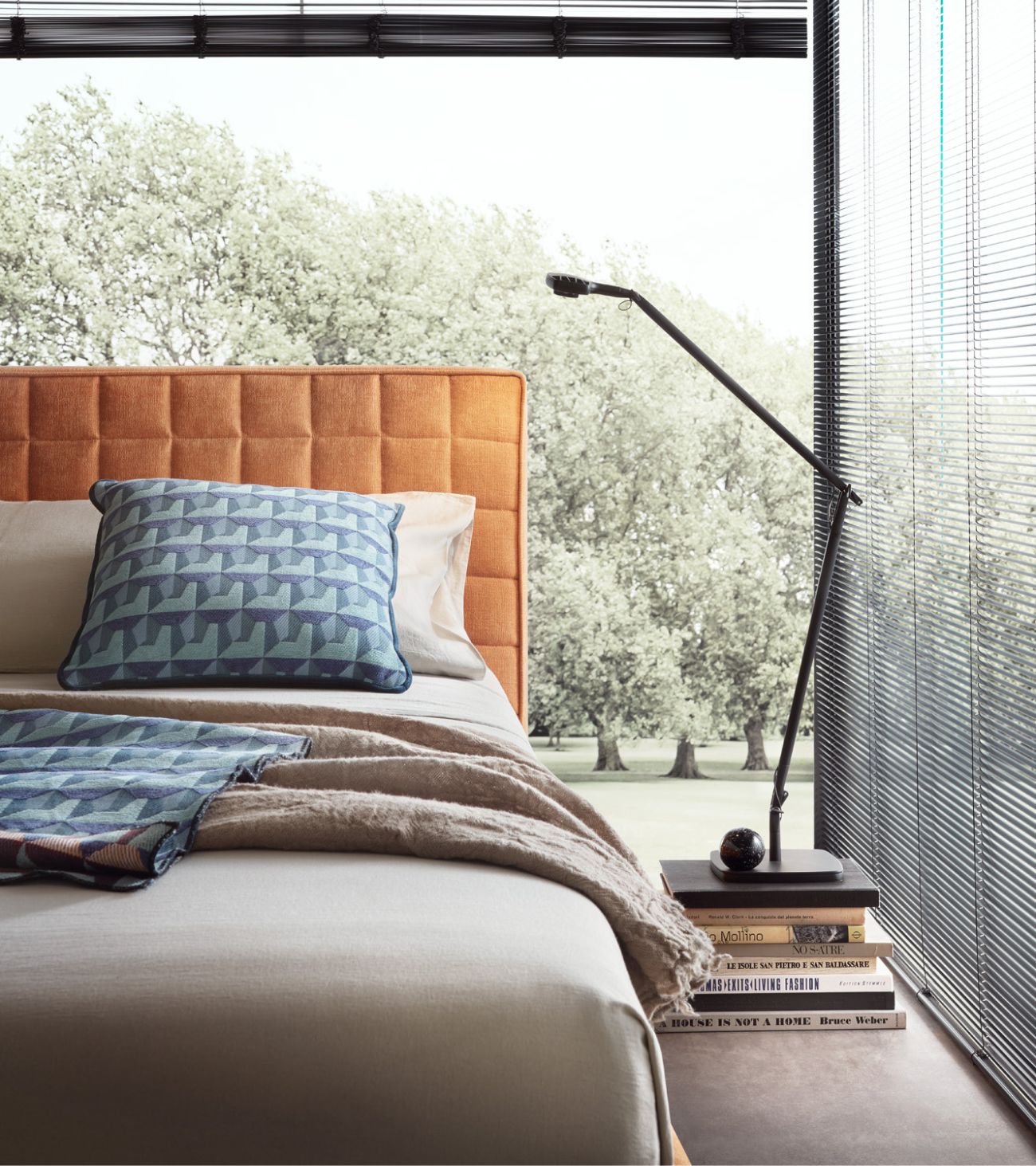 The measurement of proportions defines the Picolit bed. Intimate, welcoming, and discreet in character, it is designed with rigorous and timeless lines where the padded headboard with quilted stitching stands out, enriching its refined formal cleanliness.