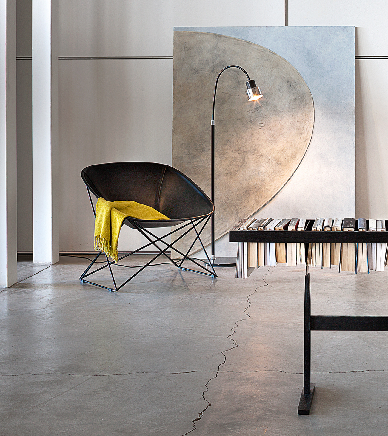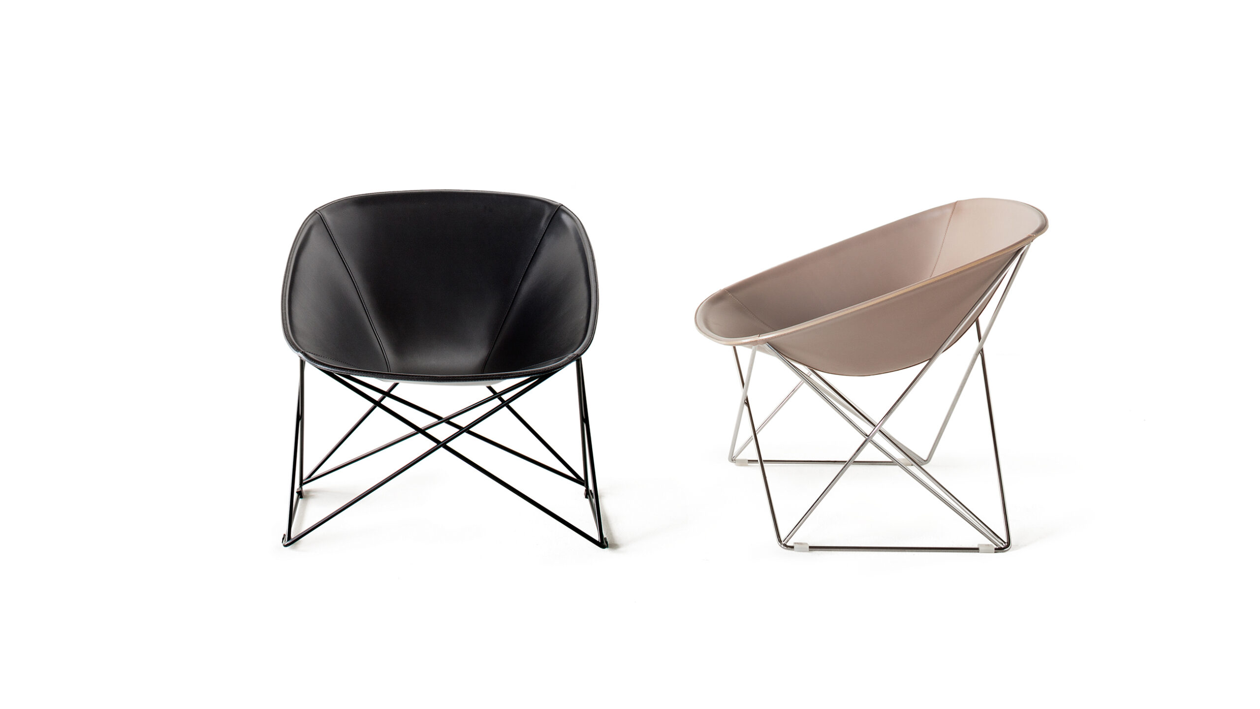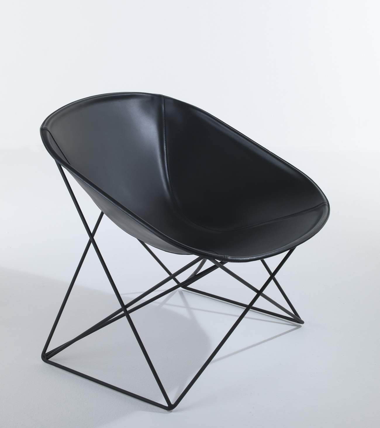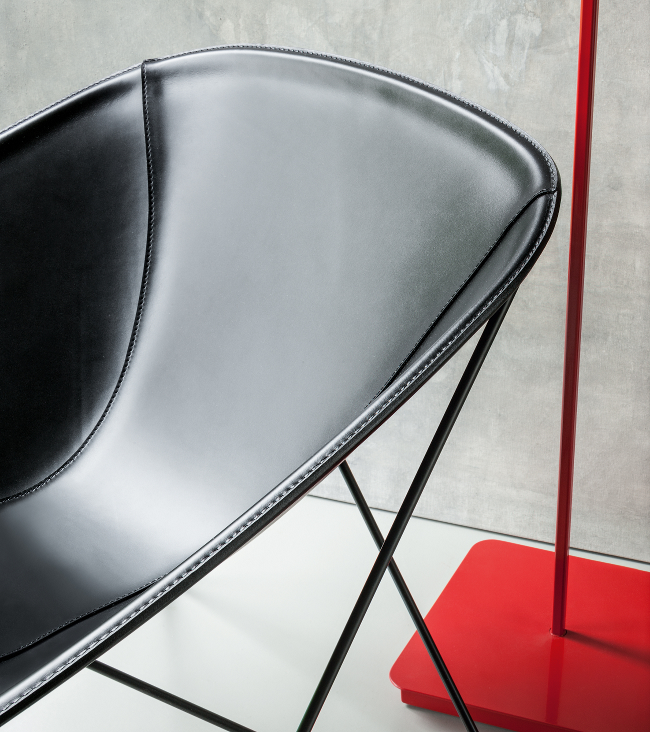 From four points on the ground, groups of two or three elements branch out at sharp angles to support the four corners of the generous bucket seat shell upholstered in leather. The sinuous curves are enhanced by meticulous decorative stitching, a perfect testament to LEMA’s bespoke craftsmanship approach.