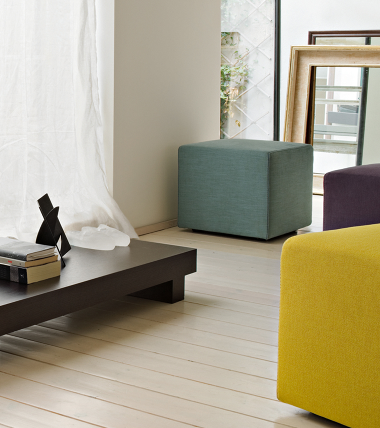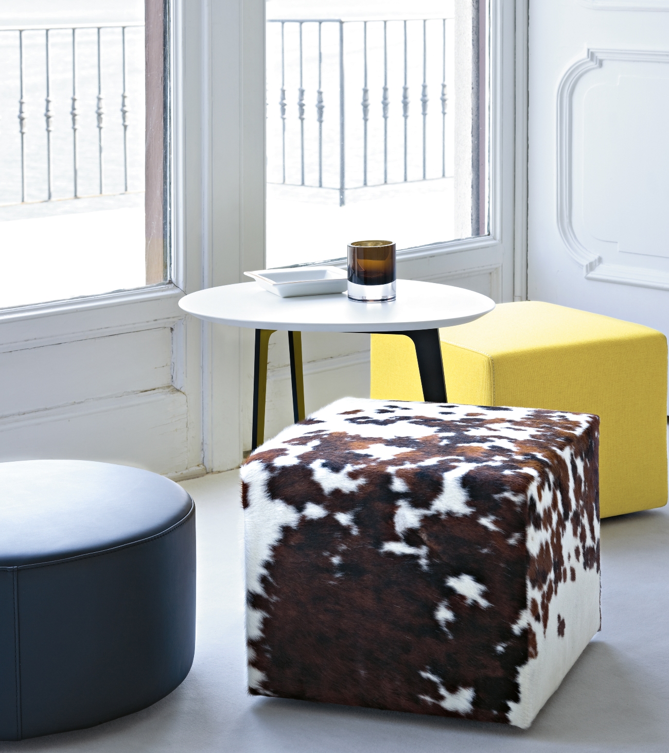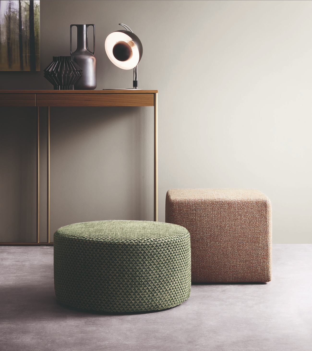 Available in two shapes, cylindrical and cubic, it can be used individually or by creating compositions playing with volumes and colors. For maximum customization, a strength of Lema’s production, the coverings can be chosen from the company’s wide collection which includes fabrics, leathers, and eco-leathers.