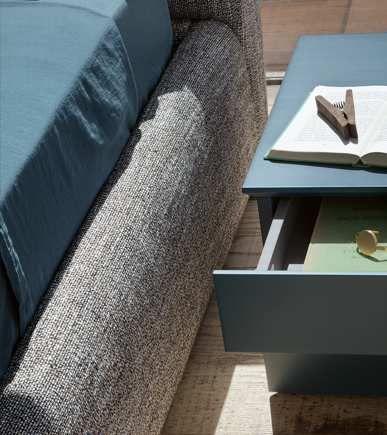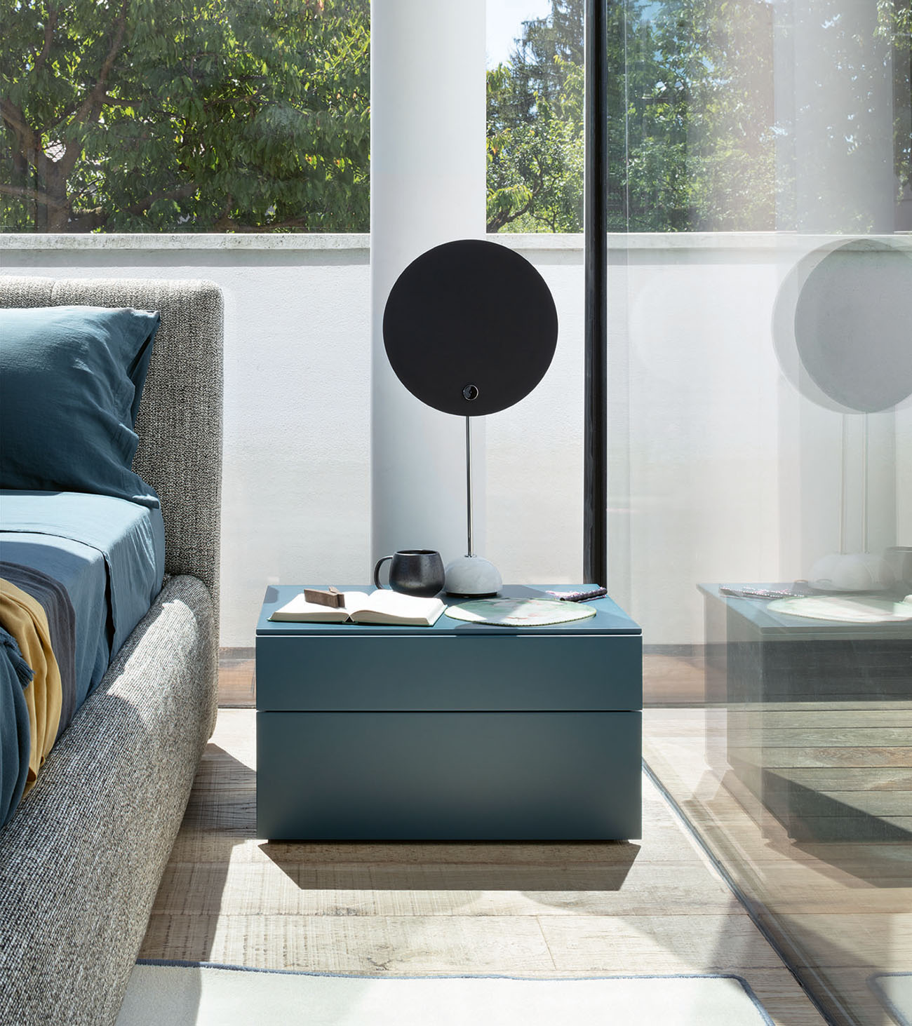 The result of the meticulous design research by Officinadesign Lema, Quarantacinque is a series of elegant night storage units – bedside table and chest of drawers – named after the refined 45-degree joints. Offered in matte lacquer, they are characterized by a minimal and modern style.