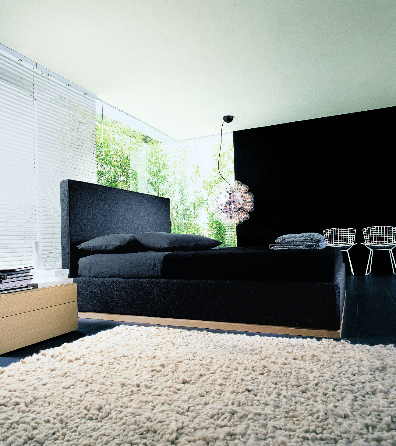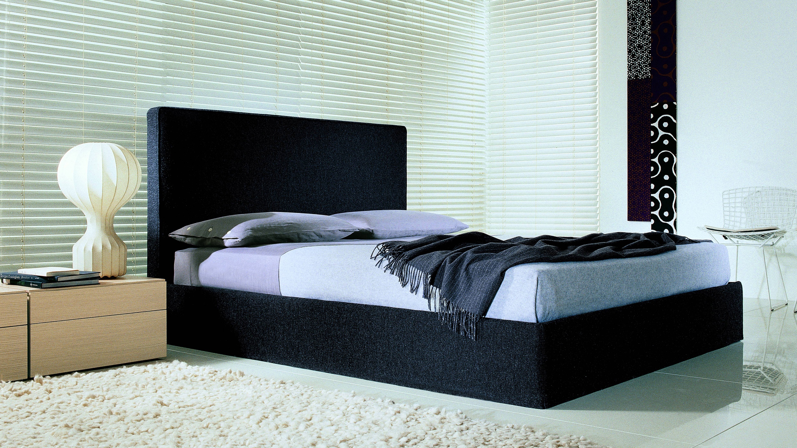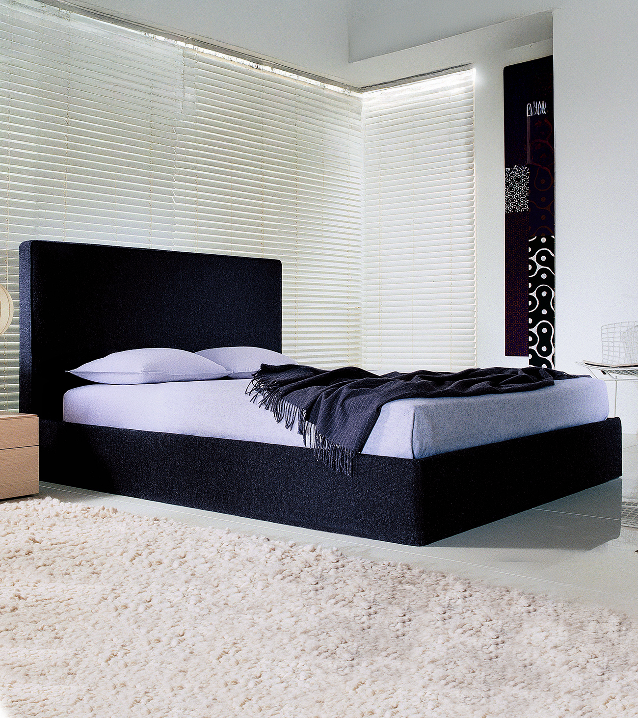 Strict and linear shapes characterize Semillon by Officina design Lema, a double bed distinguished by its high, fully removable padded headboard. Its essential lines make it suitable for any type of bedroom.