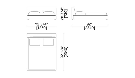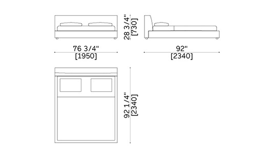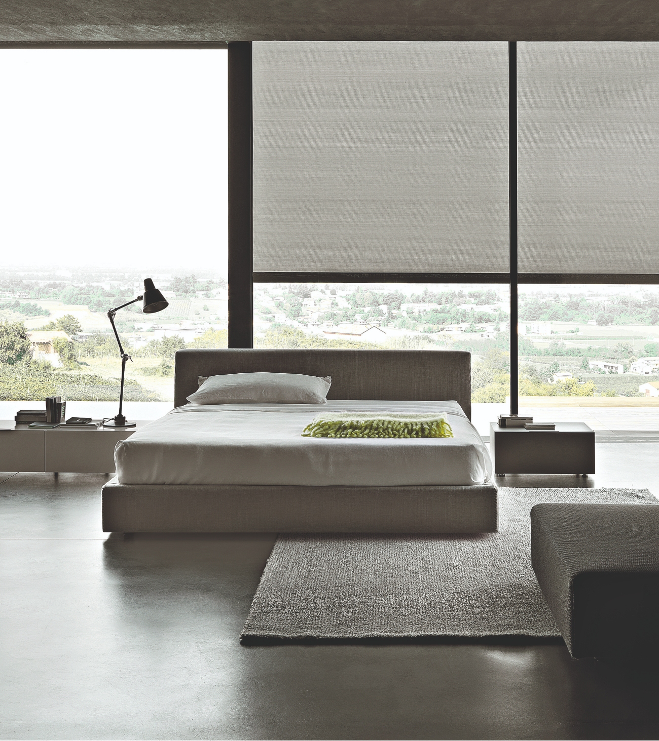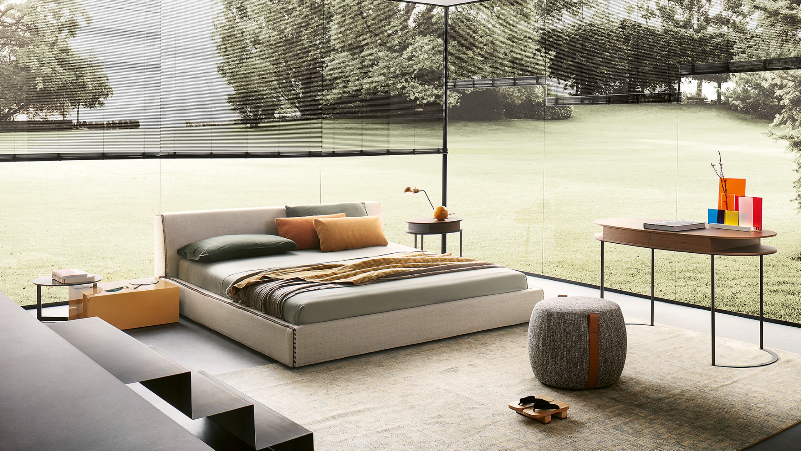 The rationality of the design, almost minimal, does not exclude the idea of softness for a bed that, even in its name, declares the precise intention to satisfy the desire for comfort, elegance, and functionality.