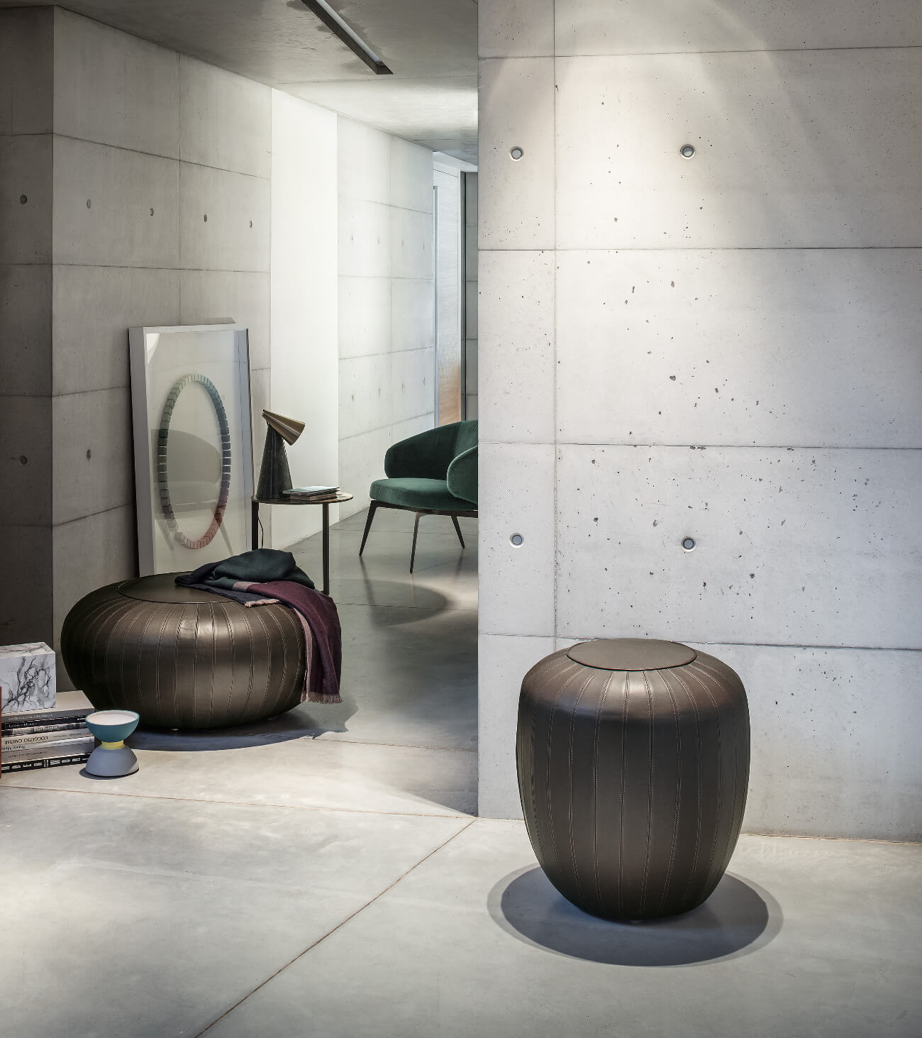 Pouf Tod is the synthesis between industrial design and high craftsmanship; the defined volumes are cut by the raised topstitched seams that highlight the great sartorial mastery that has always been the basis of Lema’s made in Italy.