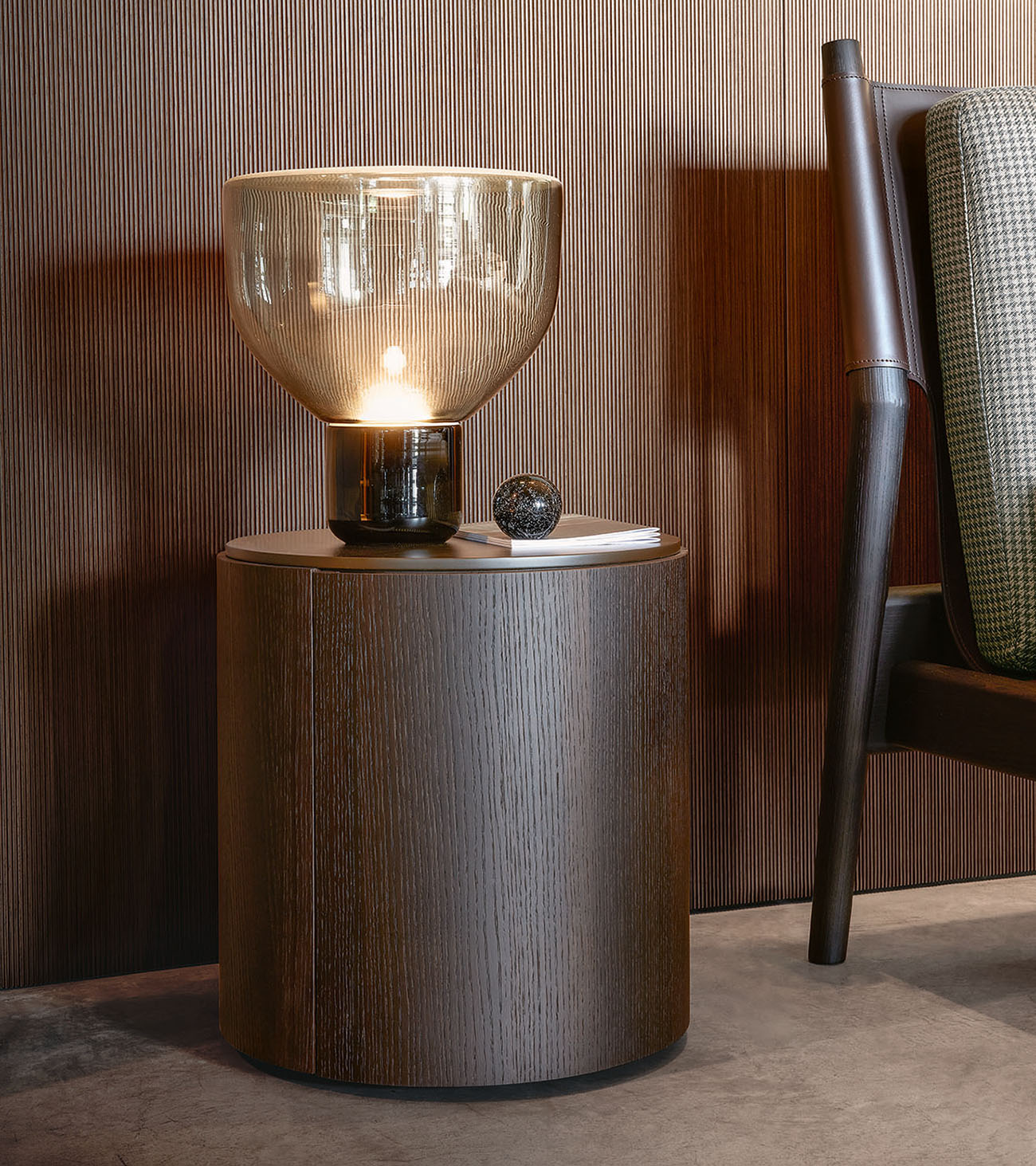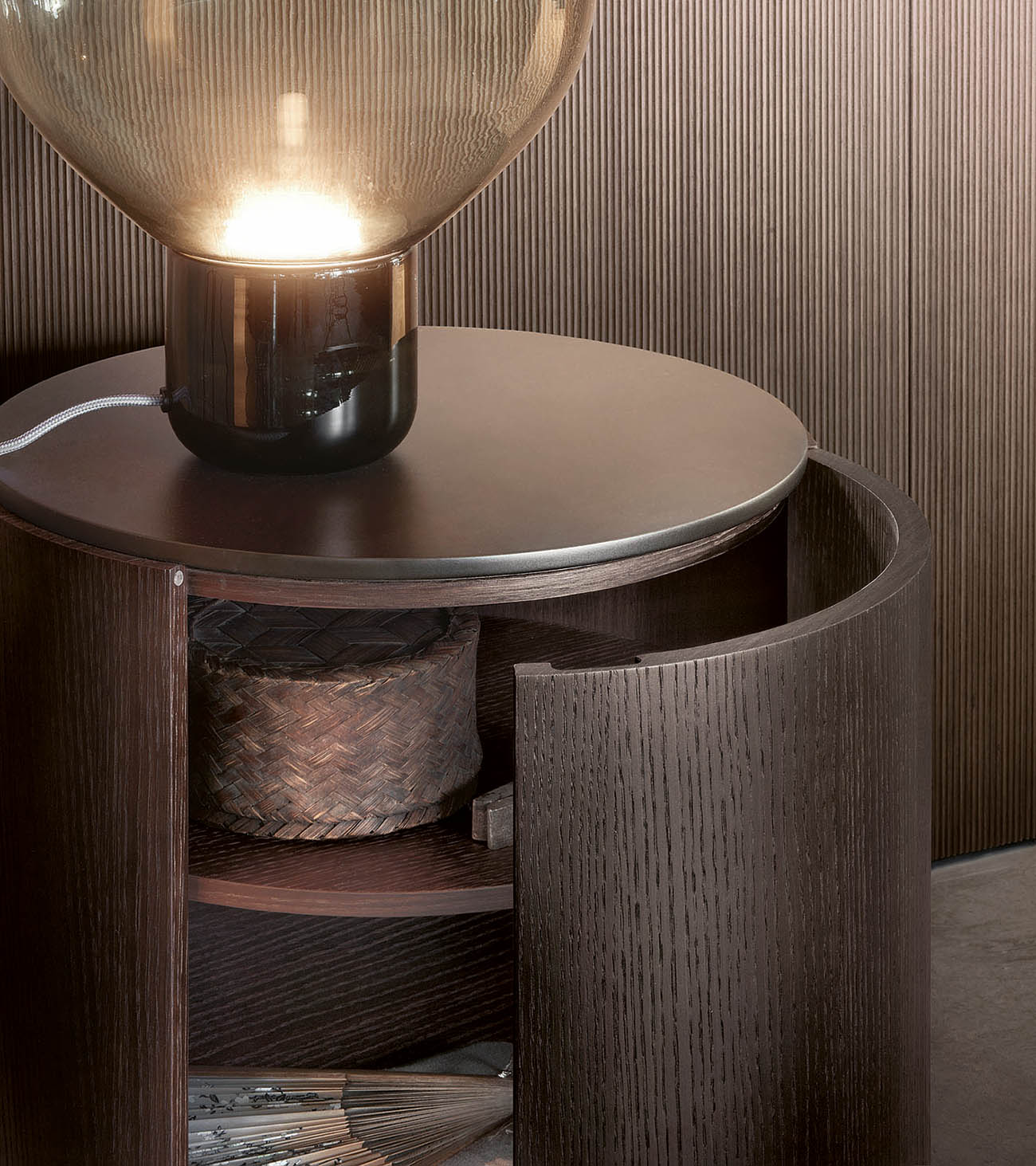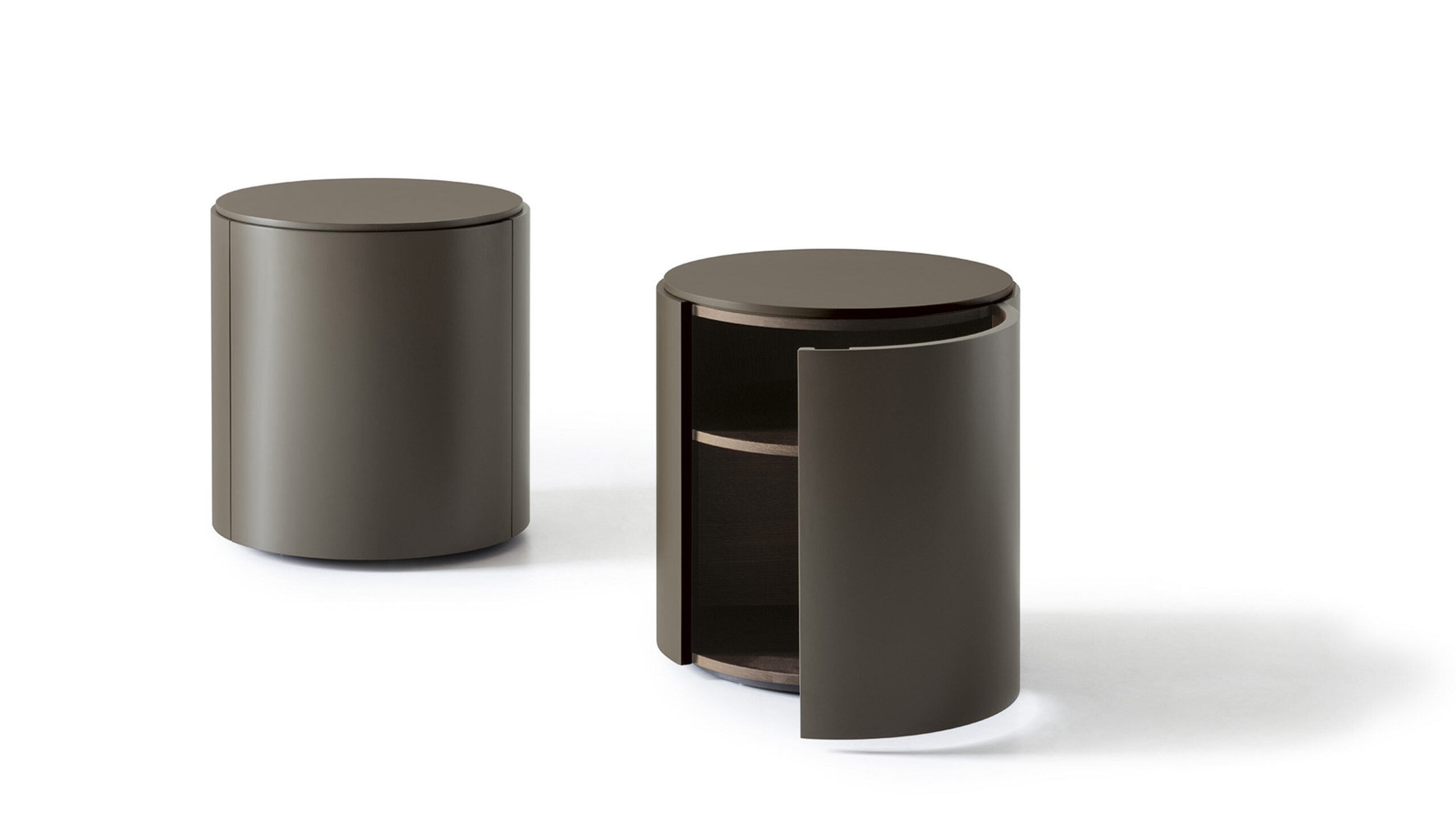 Designed by Ludovica and Roberto Palomba, Top is an essential, pure, and minimal cylindrical nightstand, seductive in its cultured and timeless spirit. Monolithic and monochromatic, in matte lacquer, it is distinguished by its curved door and round interior shelf, style details that reveal the attention to design typical of Lema’s philosophy.