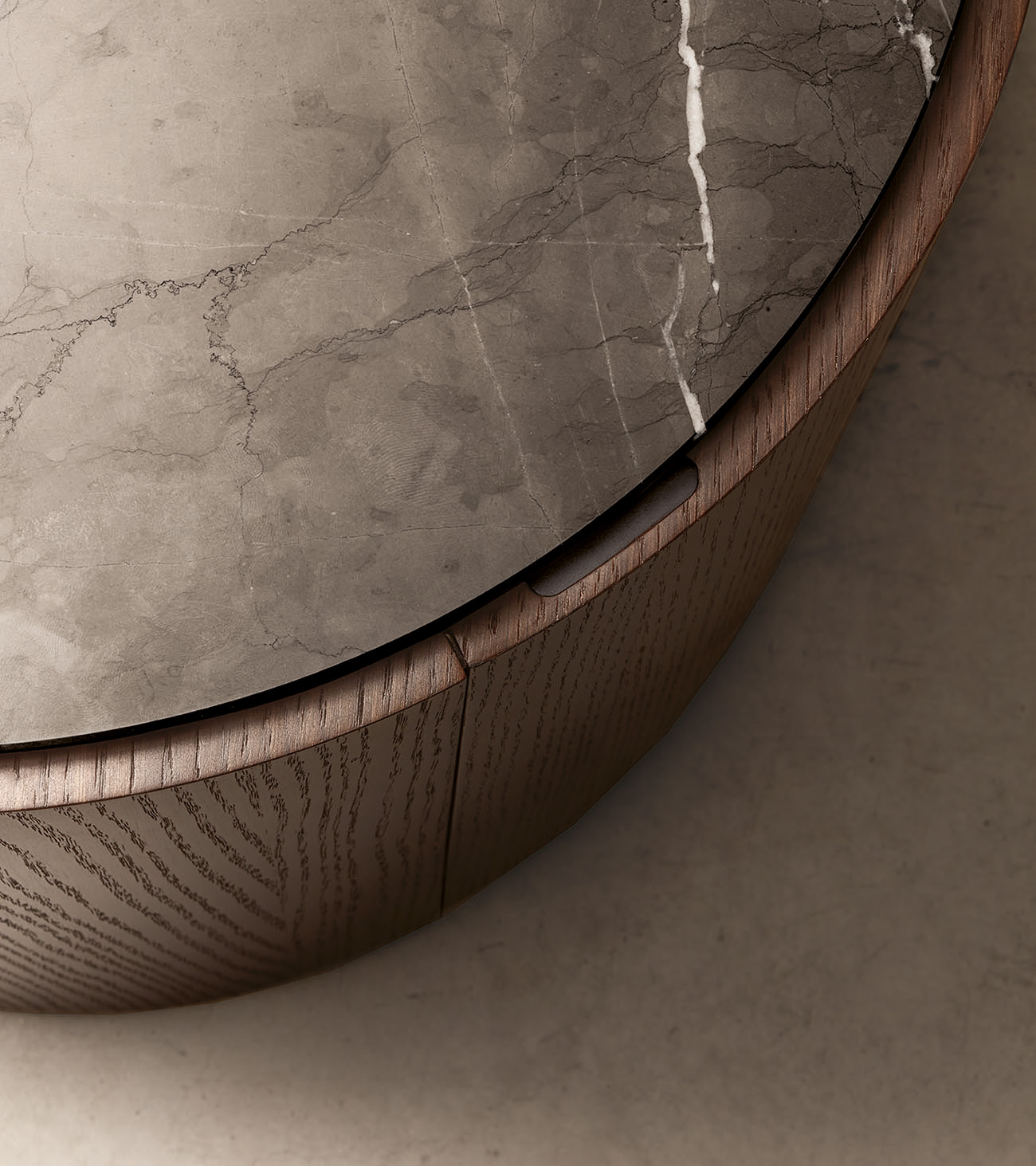The Top nightstand by LEMA, designed by Ludovica and Roberto Palomba, interprets luxury with a minimal and timeless design. Monolithic and refined, it is available in matte lacquer or heat-treated oak, with a top also available in marble or stone featuring a highly protective SHIELD® finish. This top made-in-Italy nightstand combines elegance and functionality, expressing Lema’s excellence: sustainable materials, fine craftsmanship, and an aesthetic that celebrates true Italian luxury.