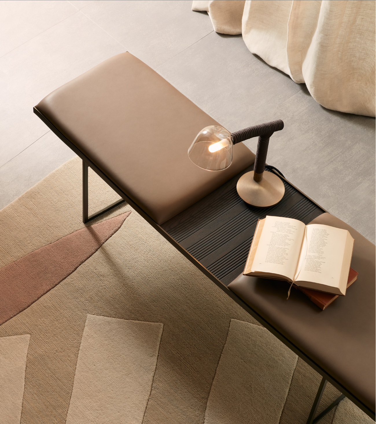 An elegant object in its discreet aesthetics and innate versatility, Uma lightly inhabits the domestic space: perfect both at the foot of the bed in the sleeping area and in the living room or entrance.