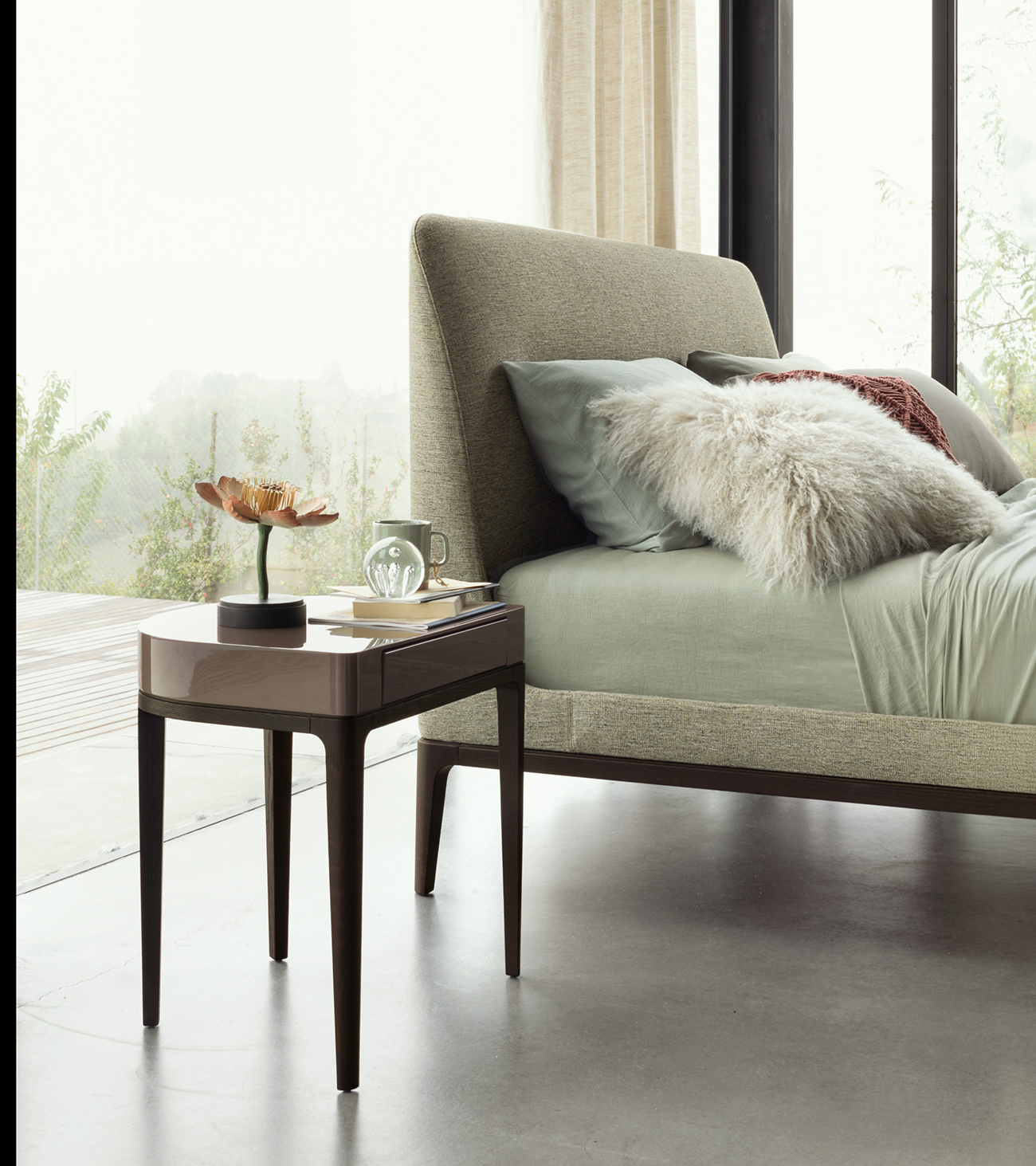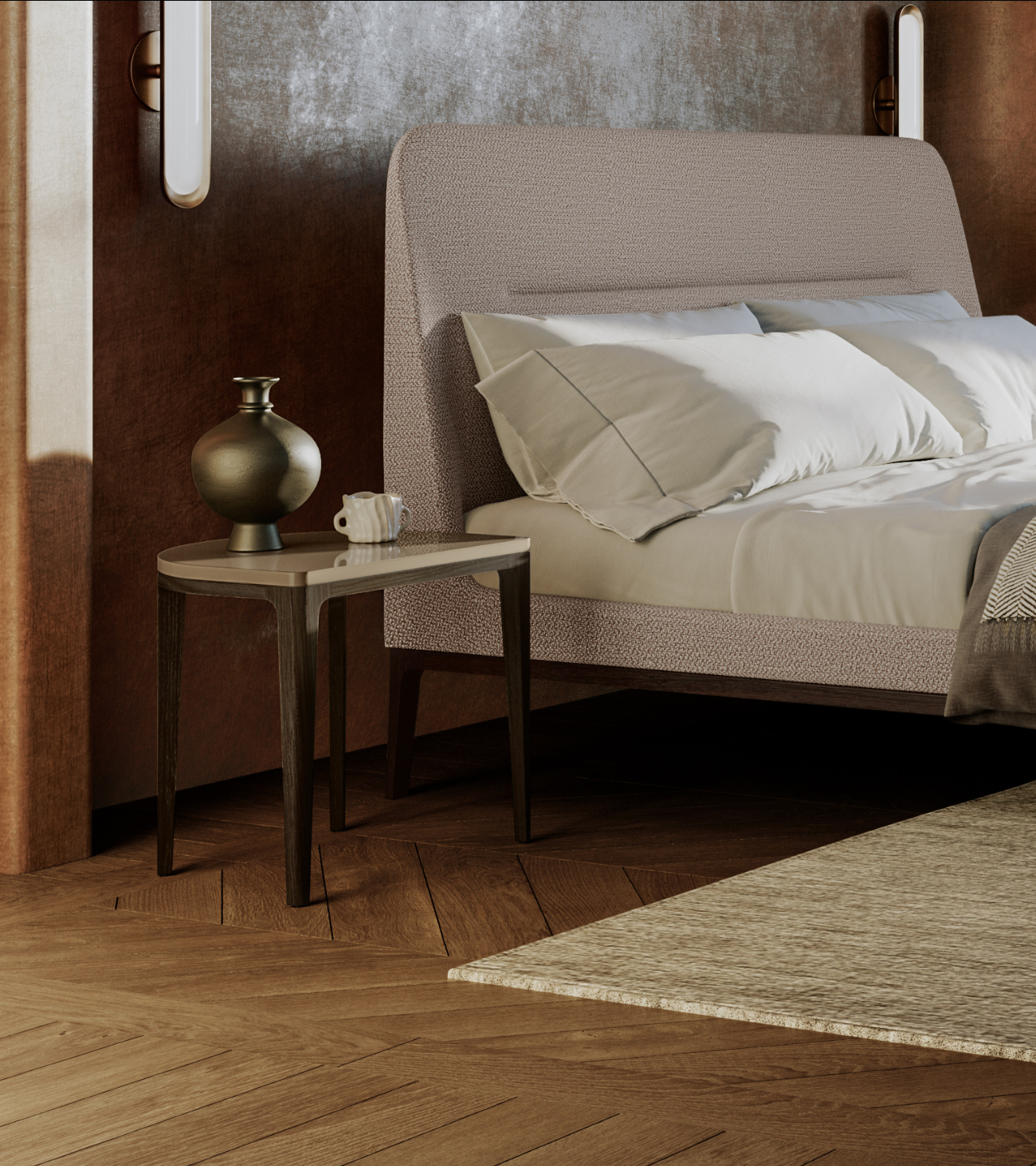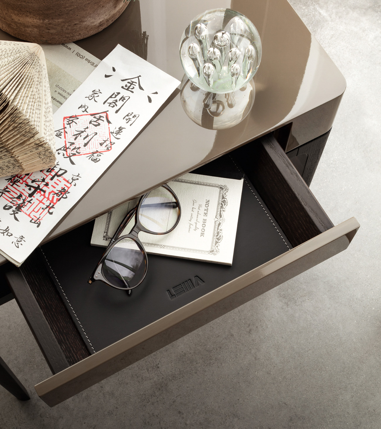The Vic nightstand by LEMA, designed by Roberto Lazzeroni, combines luxury and functionality in a perfect balance of shapes. The frame in solid ash wood stained thermo-treated oak supports a top in glossy or matte lacquer, also available with a drawer covered in regenerated leather. In the side table version, the marble or stone top with SHIELD® finish enhances the sophisticated design. Vic nightstand is the expression of Lema’s made in Italy, where craftsmanship and luxury interact with timeless elegance.