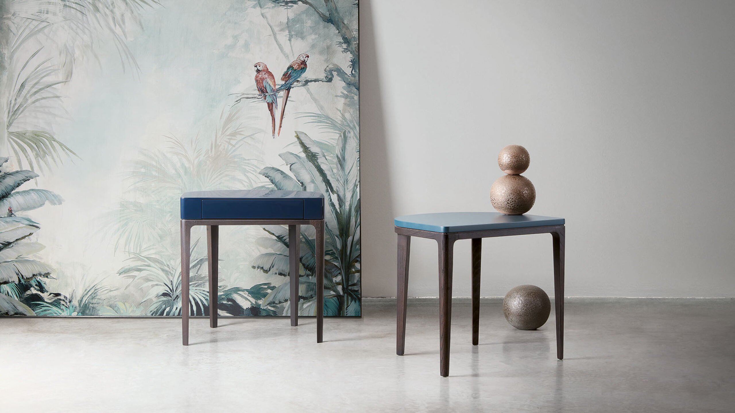 The designer’s unmistakable touch brings the Vic nightstand to life, a project that revisits classic forms with a modern twist. Characterized by an agile solid wood structure, Vic is offered both with an essential top that gently rests on four legs and in a taller version with a drawer, finished with an elegant leather bottom.