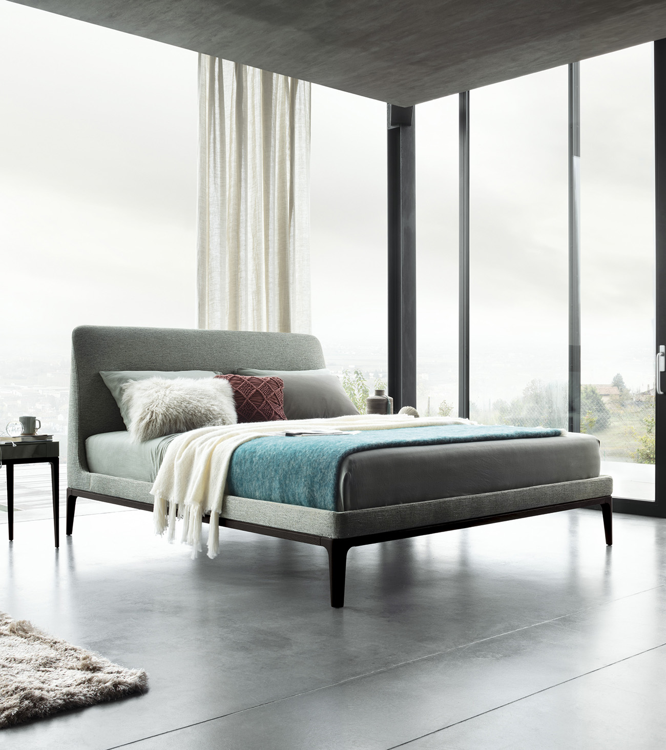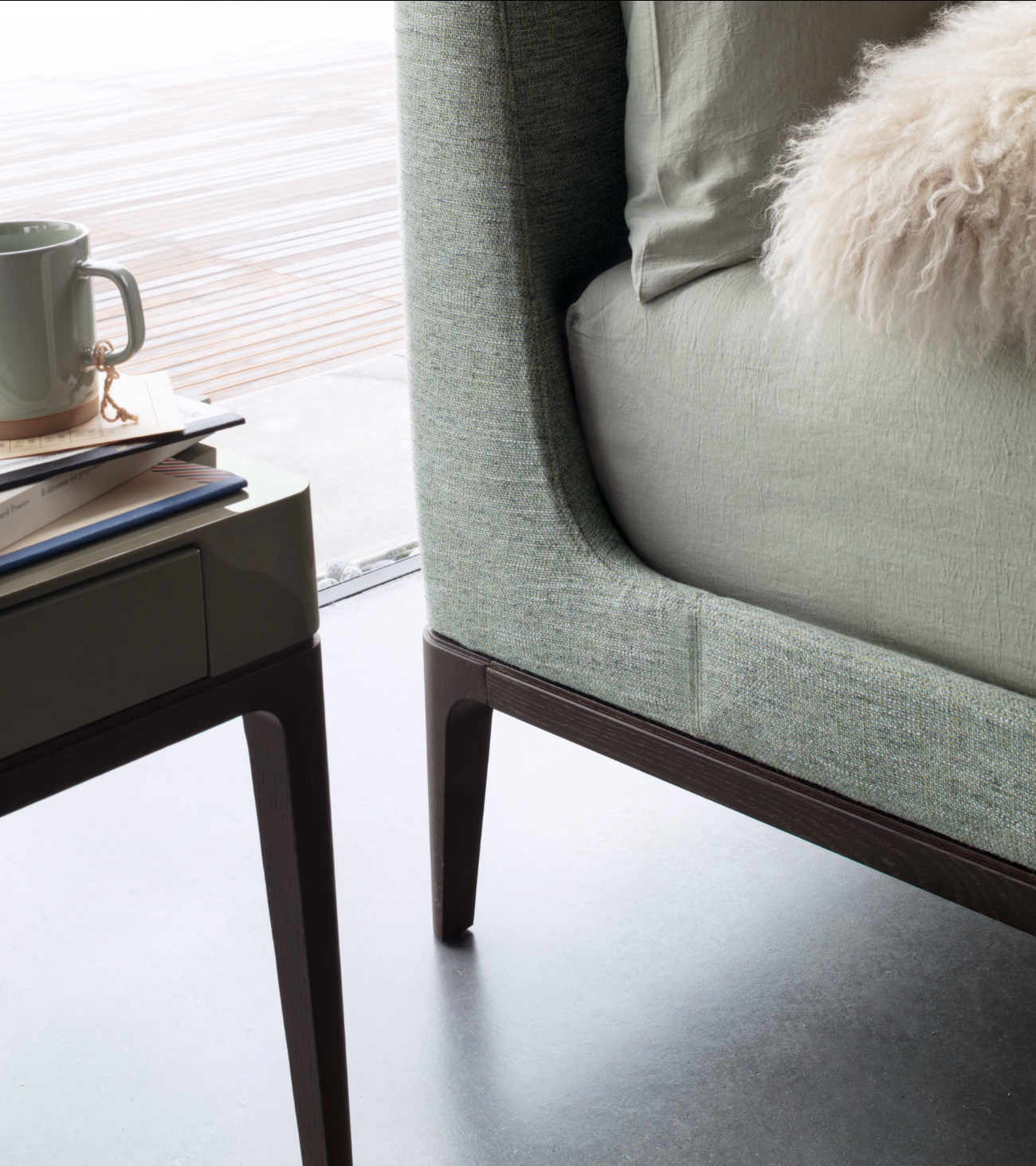 A soft and continuous line connects it to the bed frame, while the base with feet expresses lightness and dynamism. Particular attention has been given to the relationship between the different elements; the result is a proposal of great elegance that can fit into any type of home, a piece of furniture with a classic design that also adapts perfectly to a modern environment.