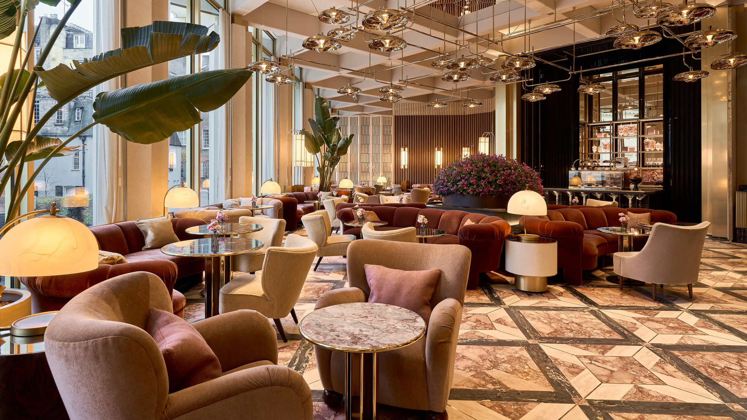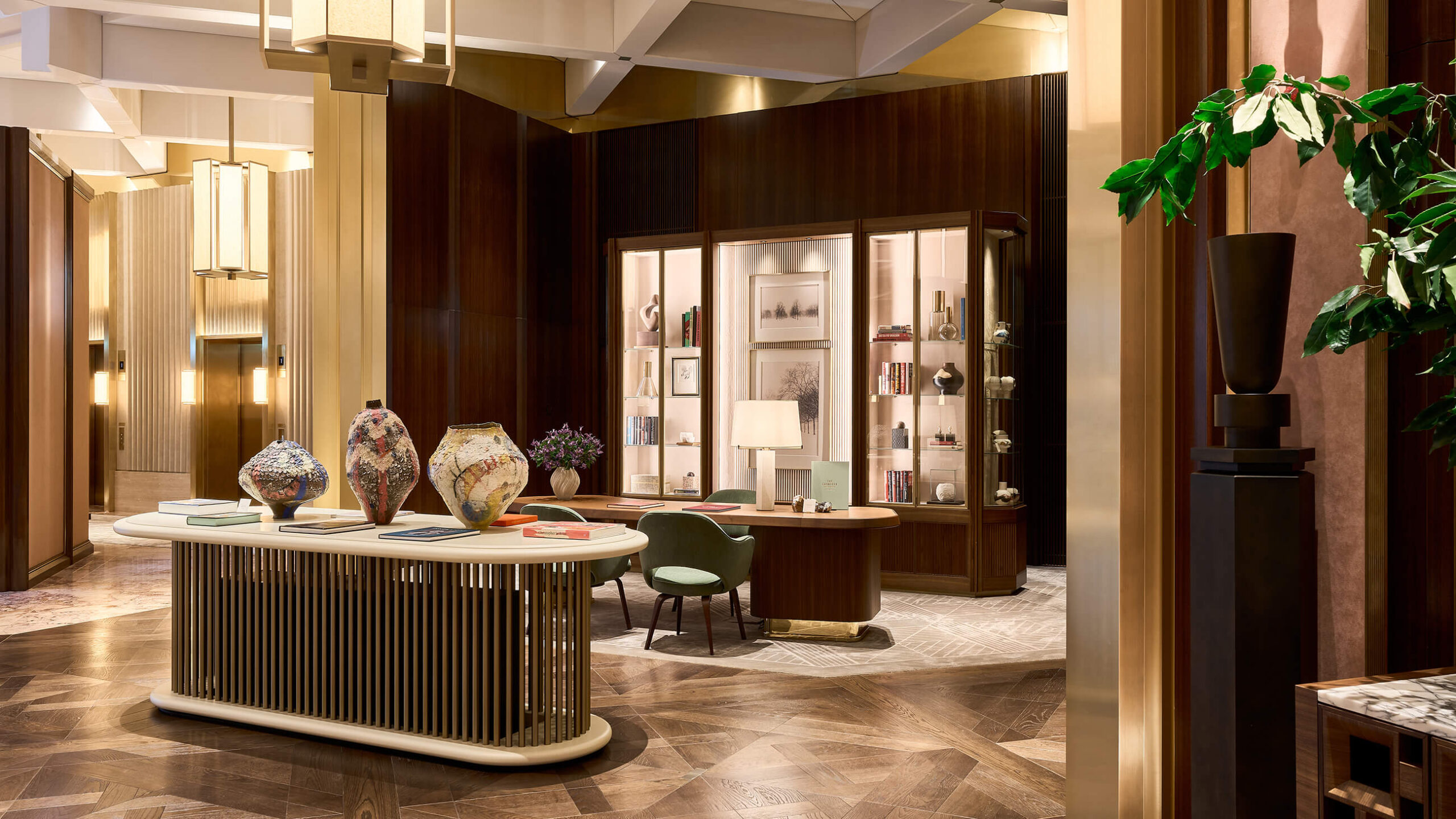Designed by David Chipperfield, the building stands out for its bold geometry and large windows that frame interiors by Joseph Dirand: elegant, tactile, and deliberately minimal.