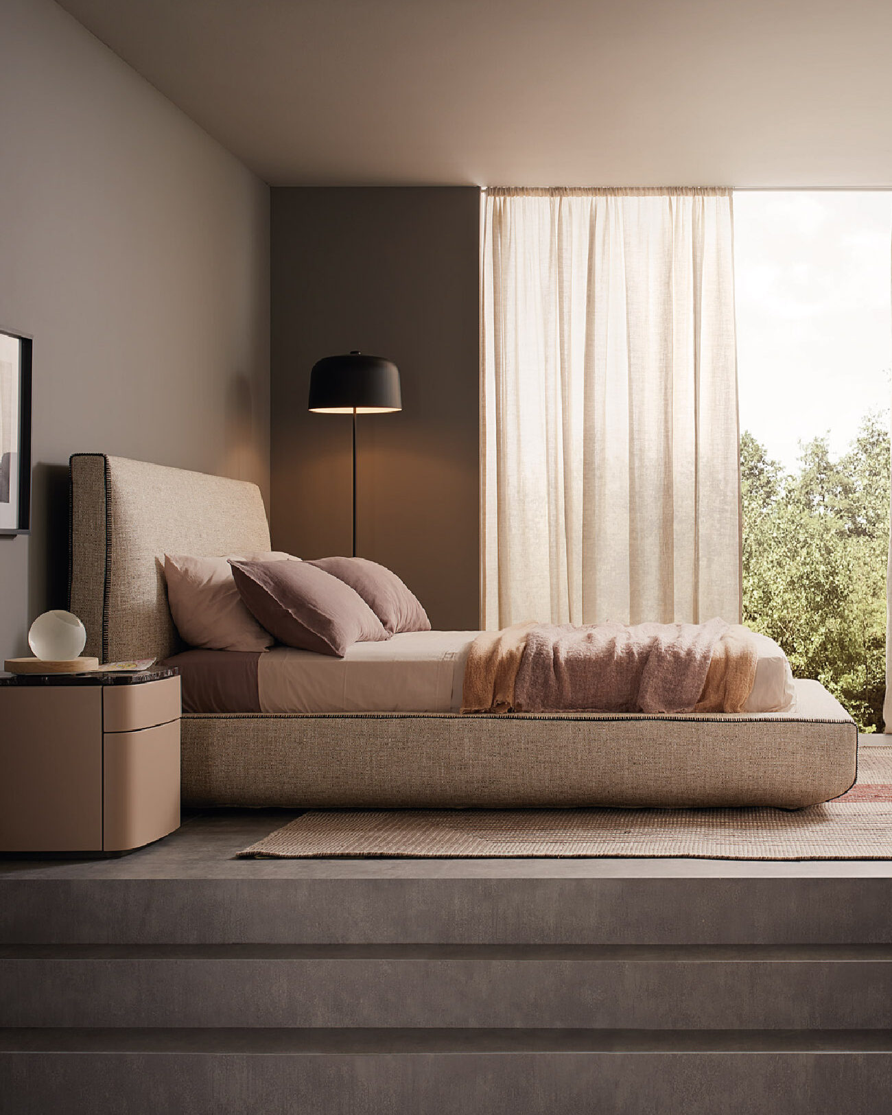 LEMA beds embody comfort in its most elegant form. Light or substantial structures, upholstered headboards, and fine coverings create welcoming and relaxing spaces, expressing a discreet and contemporary elegance.