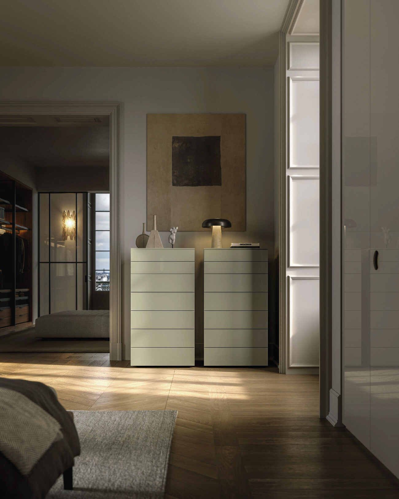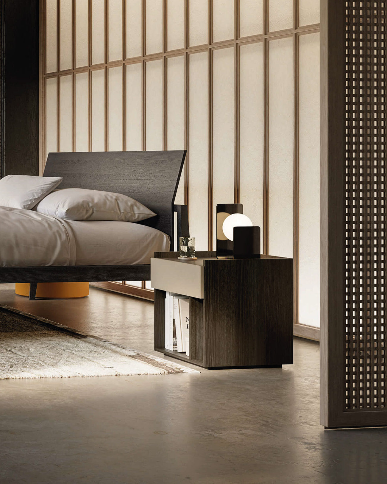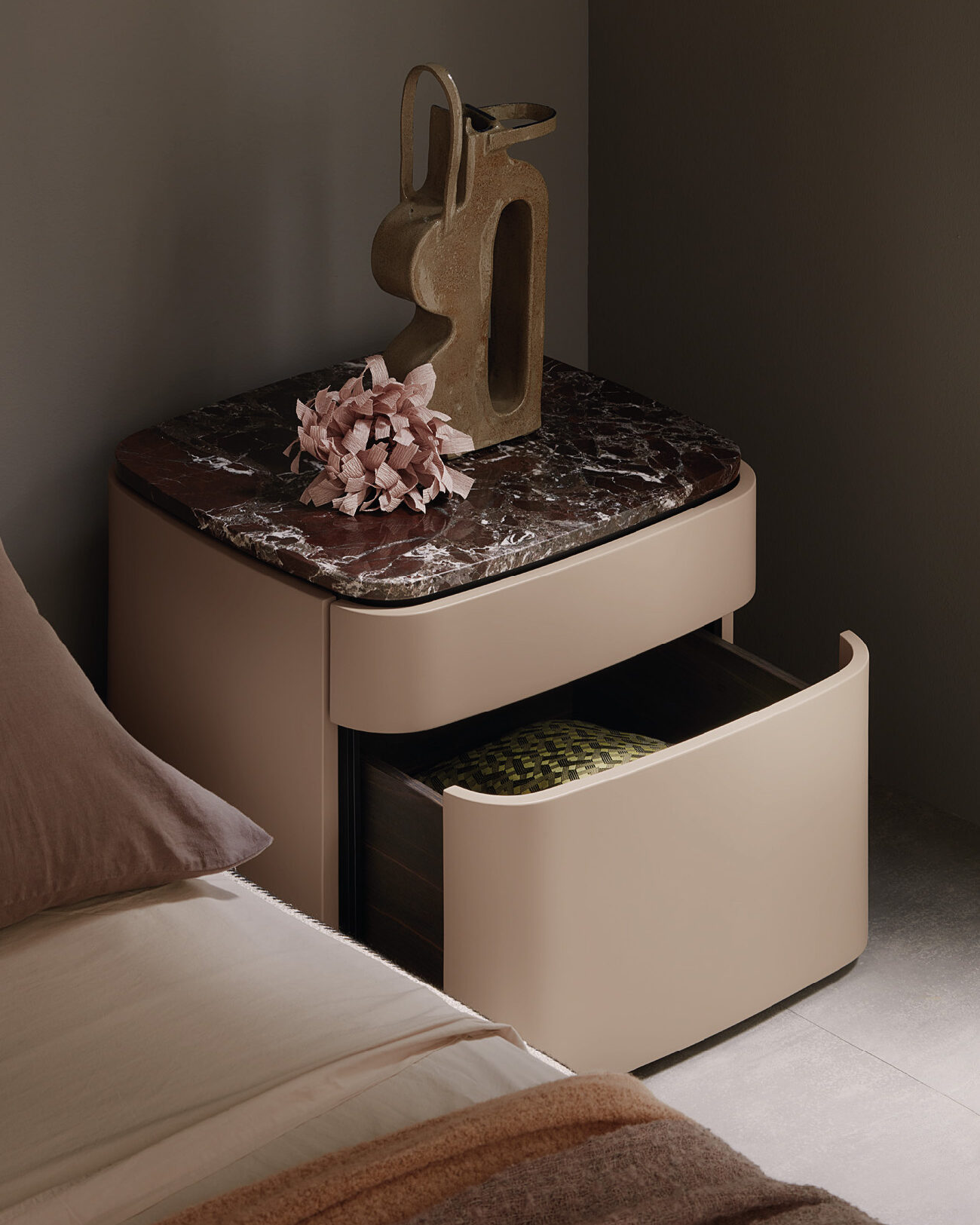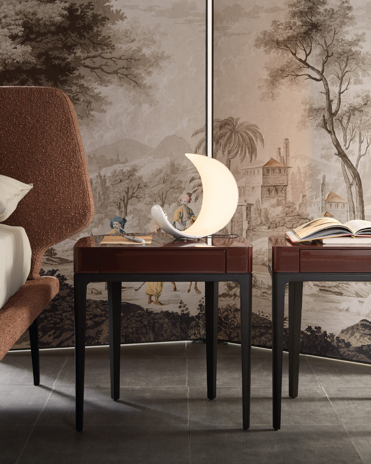LEMA bedside tables complete the sleeping area with sophistication and functionality. Small masterpieces of design that combine formal balance and artisanal care, turning every detail into a distinctive sign of style.