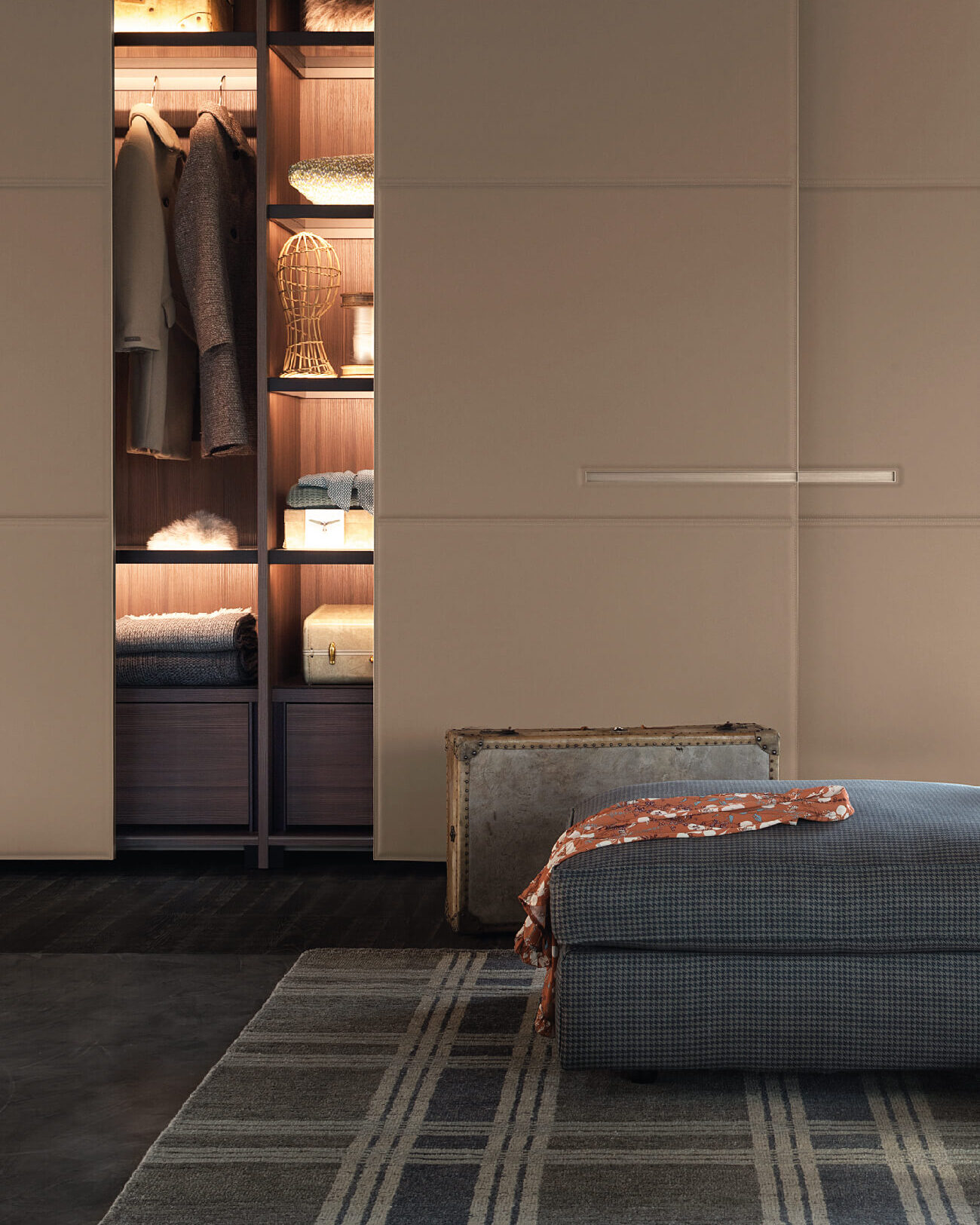 A perfect synthesis of elegance and functionality, LEMA wardrobes stand out for their essential design and bespoke solutions. Every detail is designed to offer order, comfort, and everyday beauty. Fine materials, refined finishes, and discreet technology transform the space into an experience of harmony and Made in Italy style.