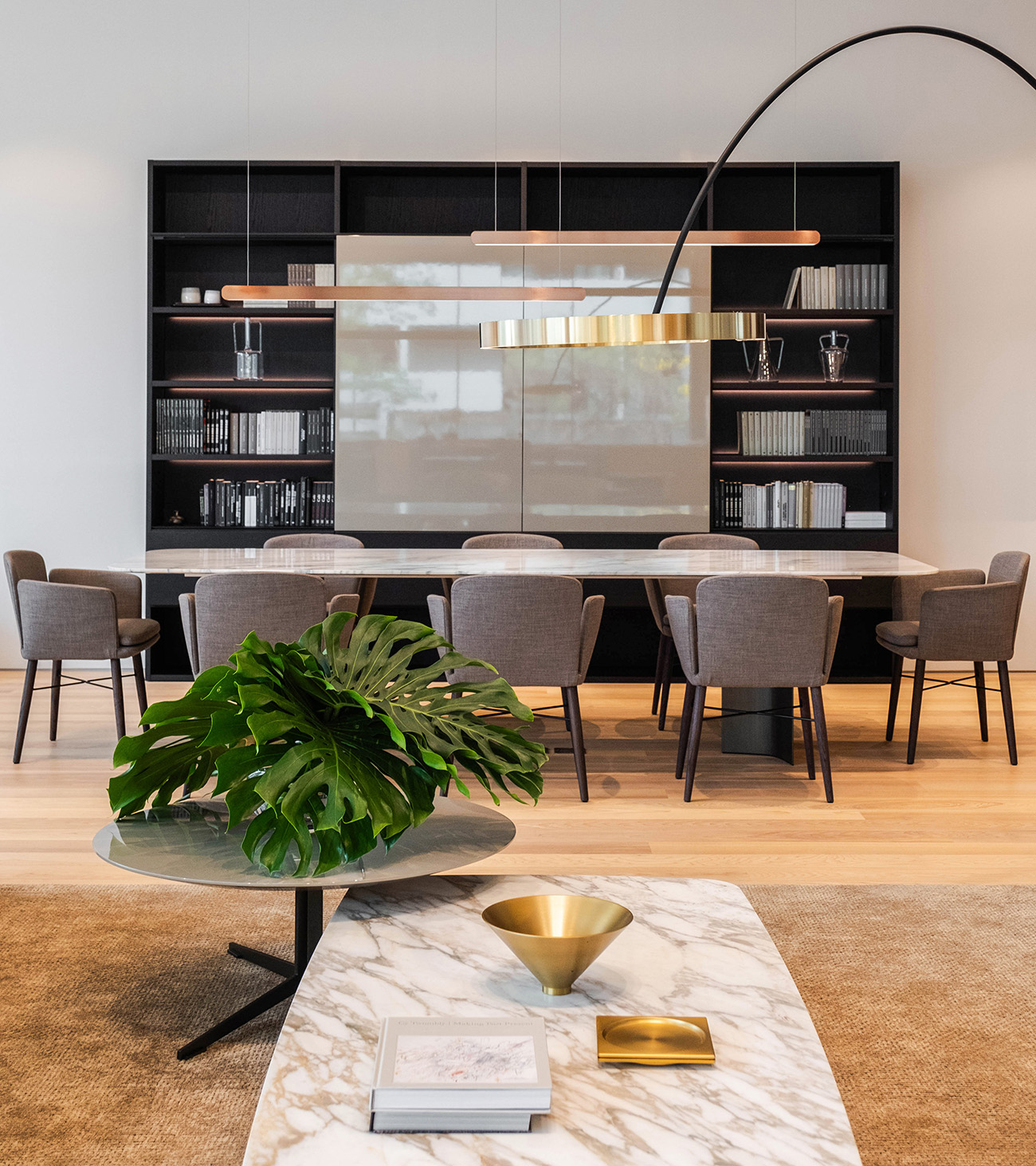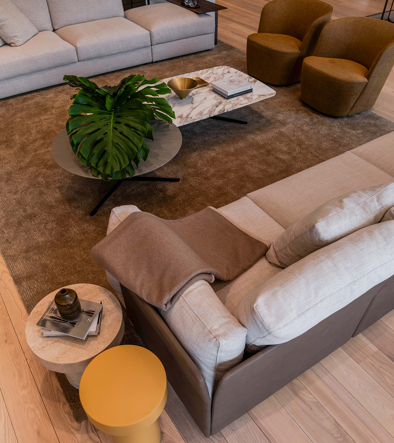 Flooded with natural light, the showroom reveals the warm textures and refined materials that define the Lema collections, creating an atmosphere of calm and sophisticated harmony. Sustainability and respect for the environment are central values, reflected in every carefully designed element.