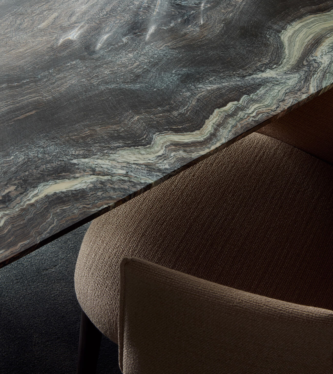 Finition : bleu lapis-lazuli, vert malachite, noir Belgianblue, blanc Candoglia, plaqué essence, argile